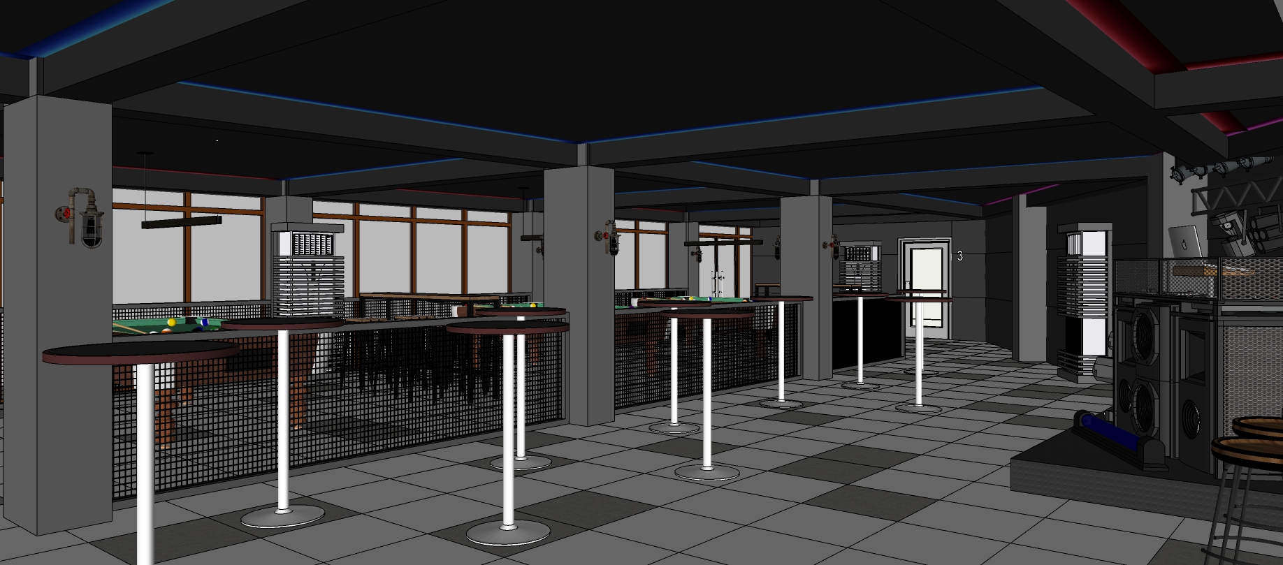 render a bar maintain the photo cove ceilings with led lights based on the picture industrial interior design add people