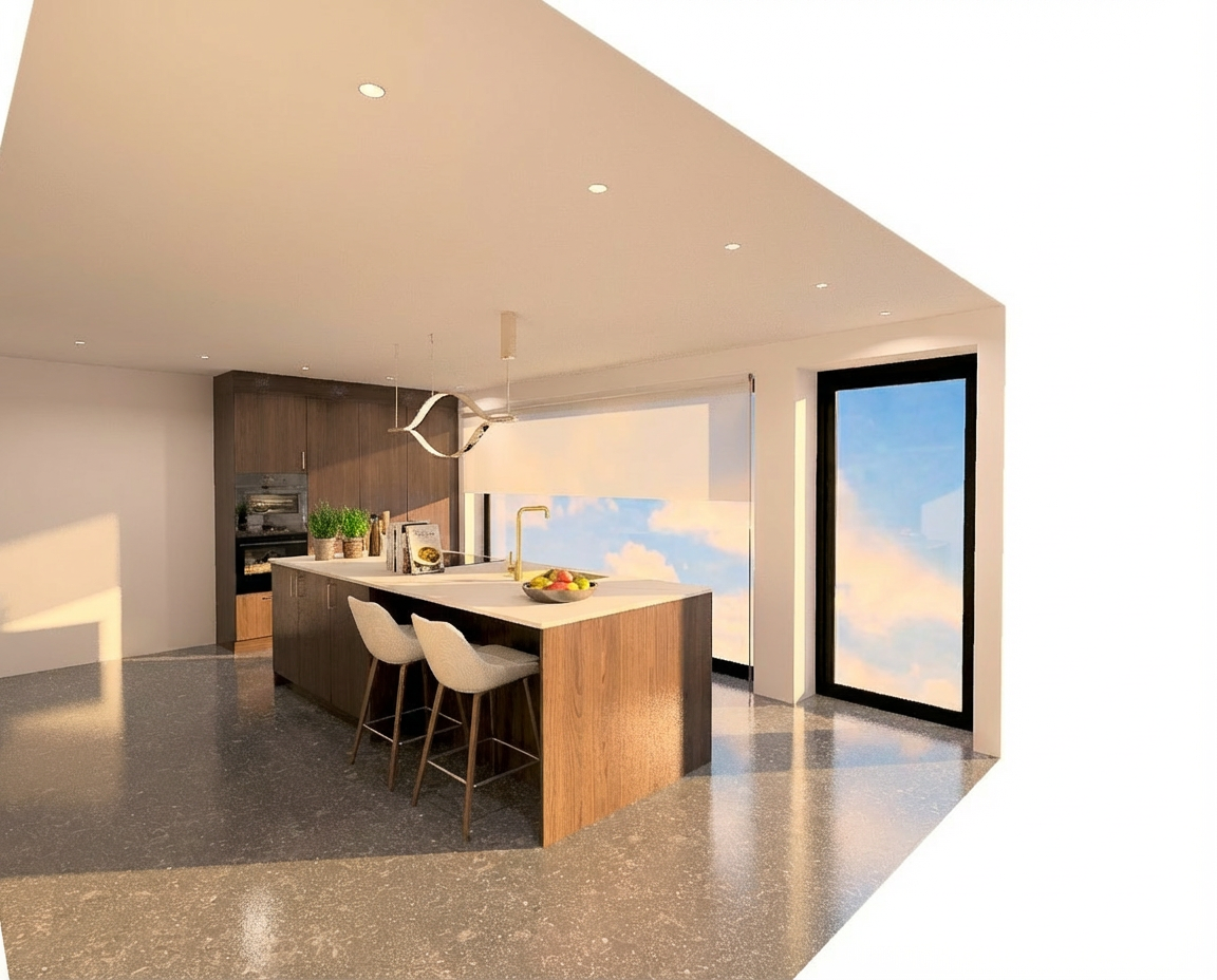 generate 3d floor plan with wood flooring 10 walls and concrete in covered patio