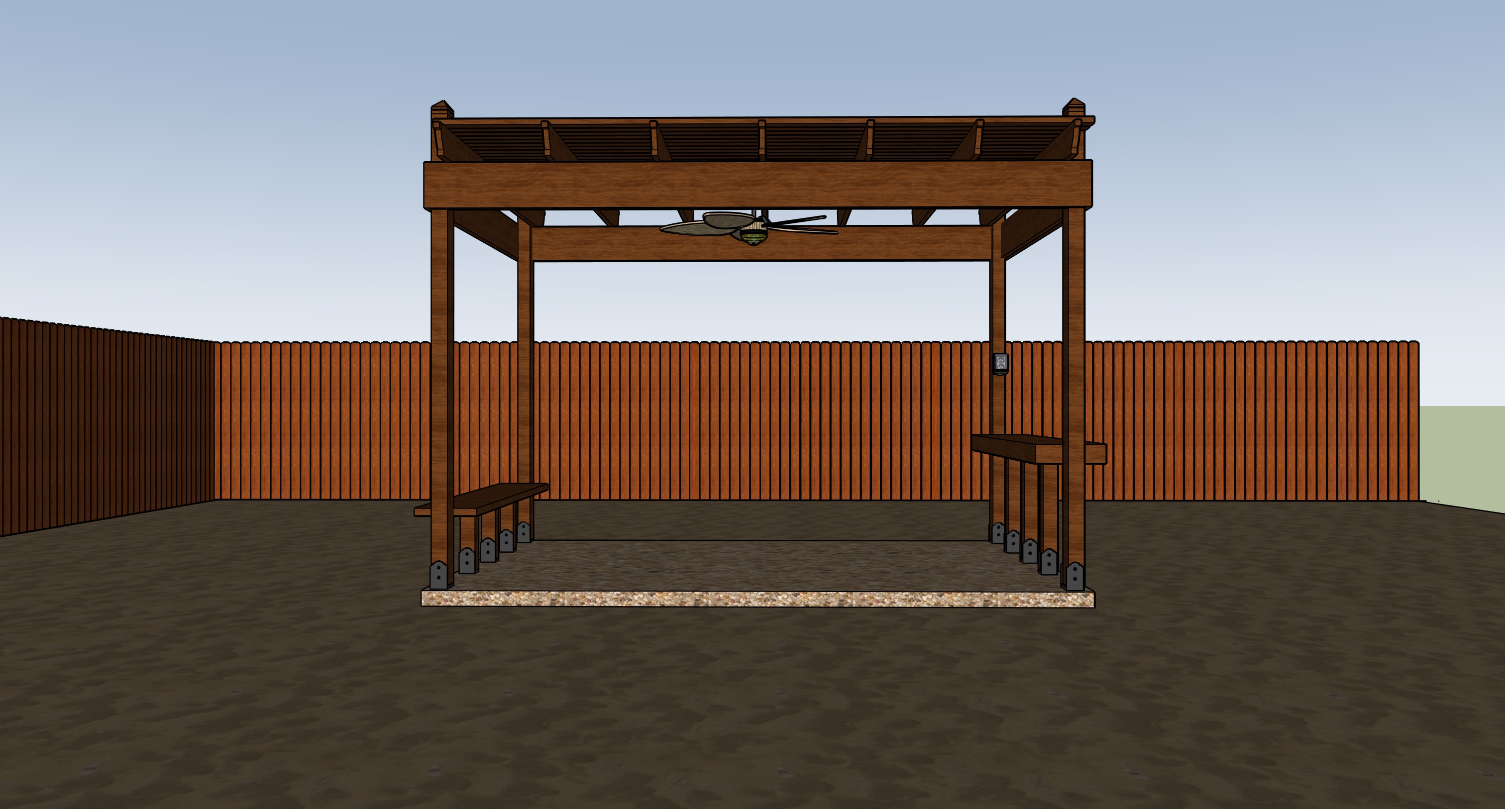 create a highly realistic architectural rendering of a wooden pergola with accurate proportions positioned on a finished patio surface surround the pergola with a clean horizontal slat fence and landscaped areas featuring shrubs soft greenery and ground cover use warm natural sunlight soft shadows and realistic materials such as stained wood matte metal brackets and stone or concrete flooring apply cinematic lighting high resolution textures depth of field soft background blur and premium architectural photography styling emphasize natural wood grain crisp reflections and a bright minimalist color palette to create a refined polished luxury outdoor environment