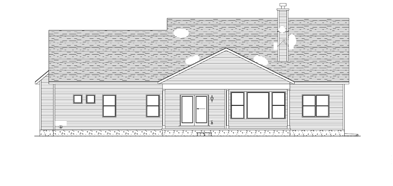 make as photorealistic as possible while keeping textures the same as shown professional landscaping in fowler ohio at 11am remove any text use the following finishes antique white lap siding antique white trim black windows black sliding patio door weather wood dimensional shingles sandy tan soffit fascia gutters and downspouts columns to be stained sw 3518 hawthorne