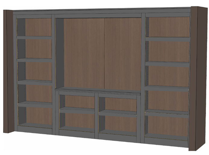 do not change the cabinets in any way preserve the exact cabinet colors materials finishes dimensions door and drawer styles hardware spacing alignment and all geometry exactly as shown do not alter the countertop shape backsplash appliances flooring lighting fixtures or wall structure only remove the construction materials clutter and mess from the scene clean the room and make it look finished and staged add a few simple tasteful home accessories appropriate for the style of the space such as a small plant soap dispenser or hand towel but do not add or remove any furniture windows or architectural elements stage the open shelves with books and minimal decore add a large clock hanging in the open section in the middle do not change colors of anything