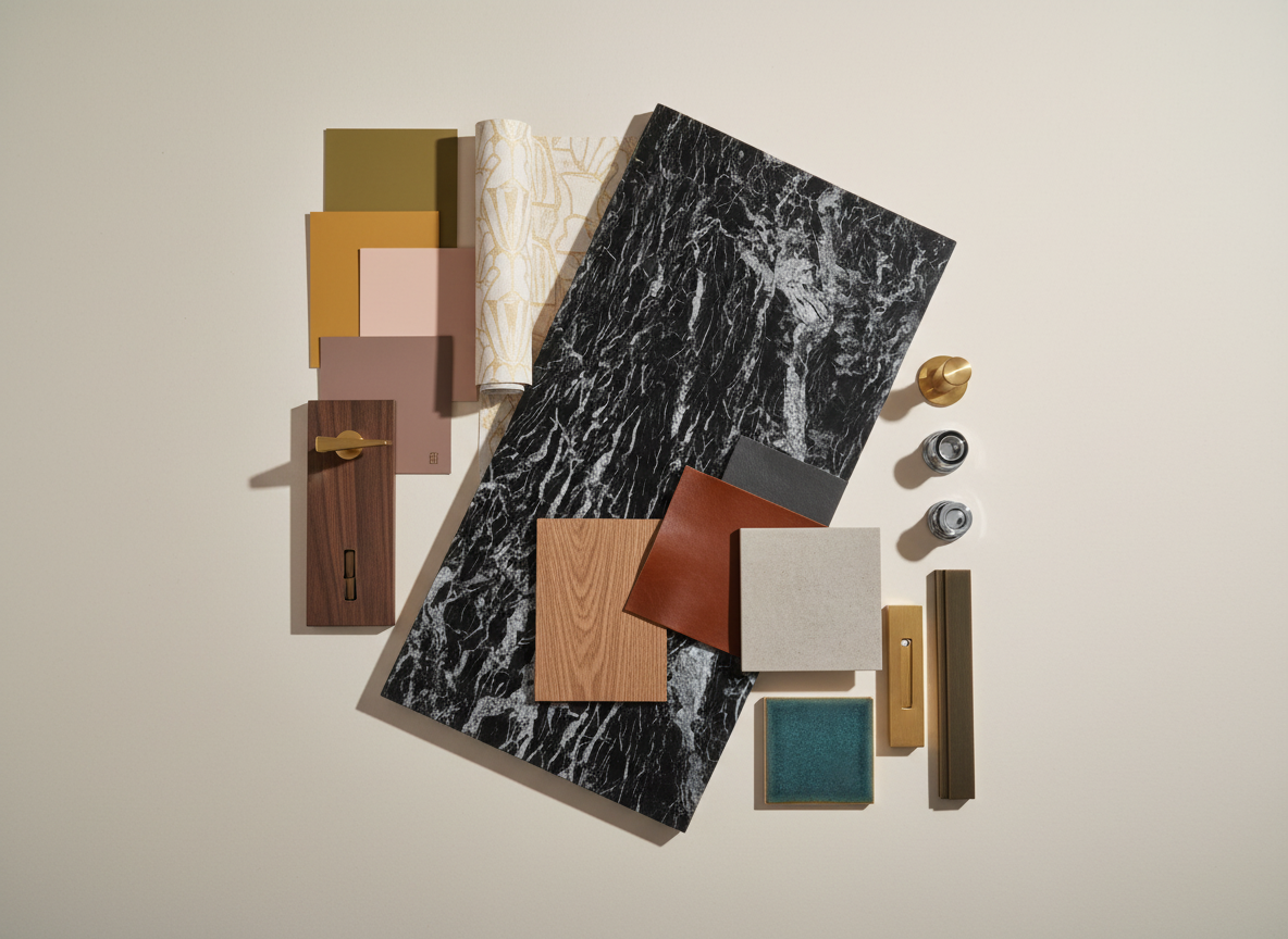 render a high end designer mcm wet bar from the moodboard featuring a slab of nero marquina marble as the countertops and backsplash show any light fixtures as illuminated and add warm sunlight from nearby windows place appropriate bar fixtures and bottles in the scene