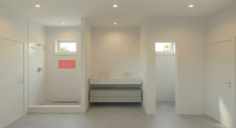 the niche should be centered horizontally with the window above the niche should be placed at a comfortable height for shampoo and soap niche finish the niche should be finished in the same tile as the rest of the shower walls do not change the tile layout on the rest of the walls do not change anything else in the room