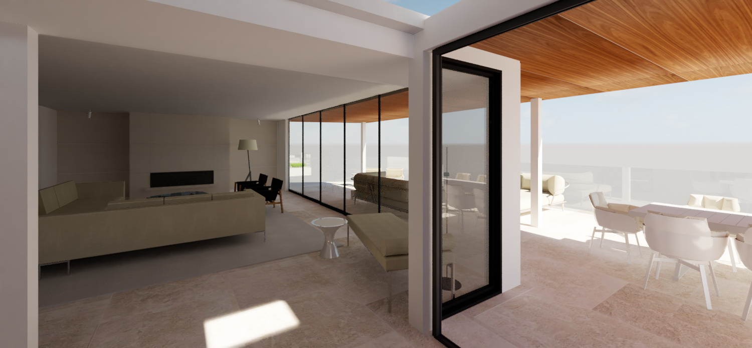 the flooring is large limestone tiles there s an ocean view out the window add warm and crisp ambient lighting