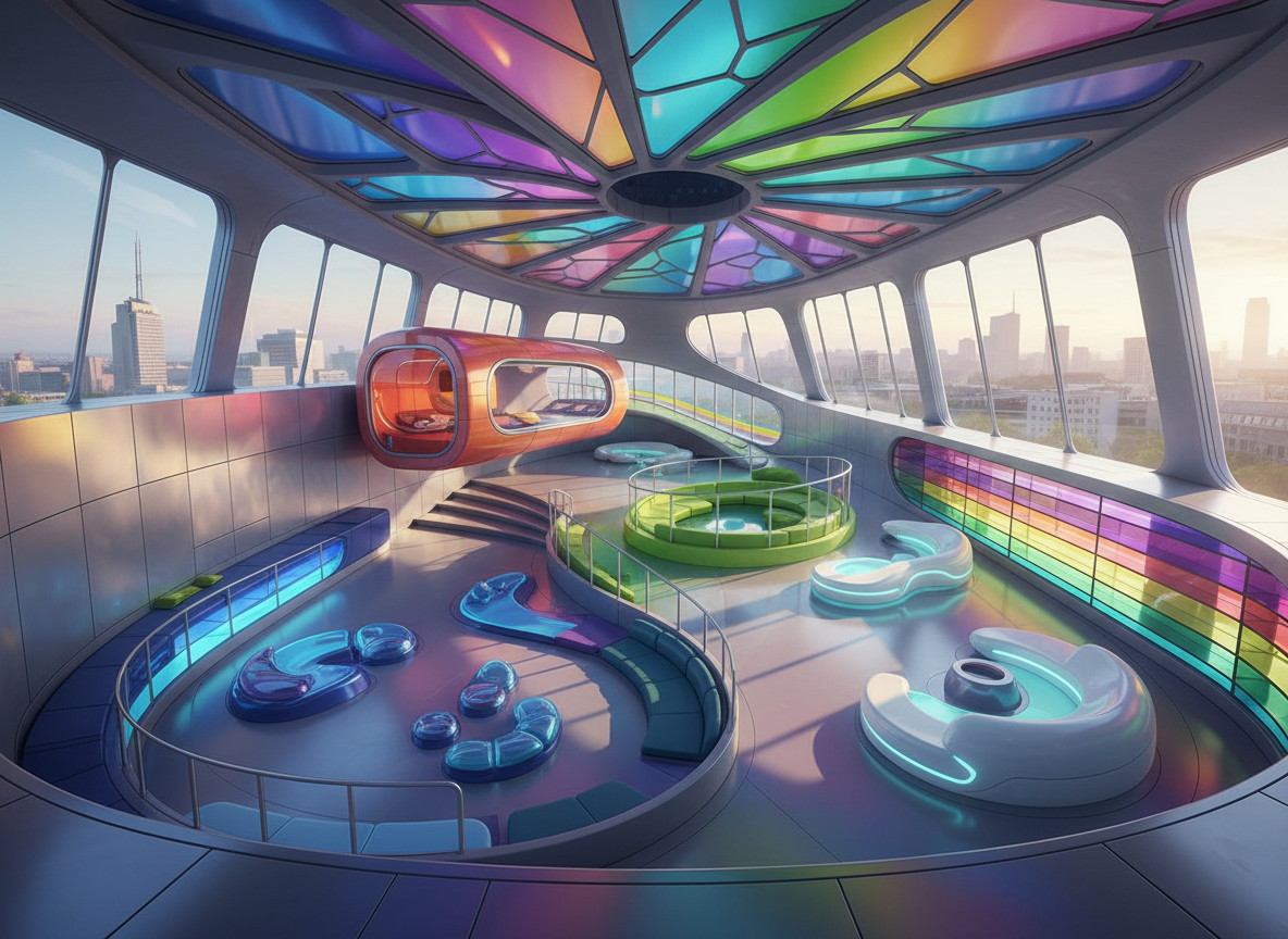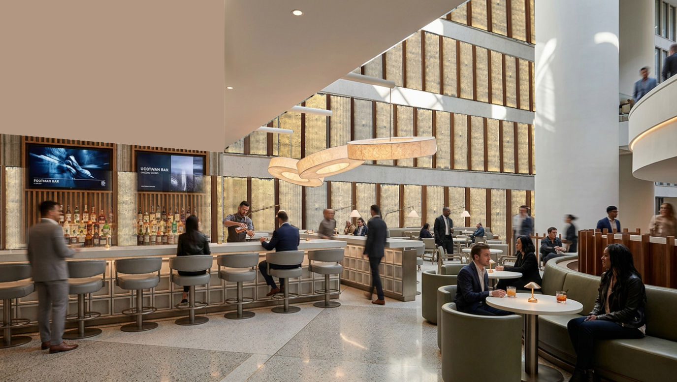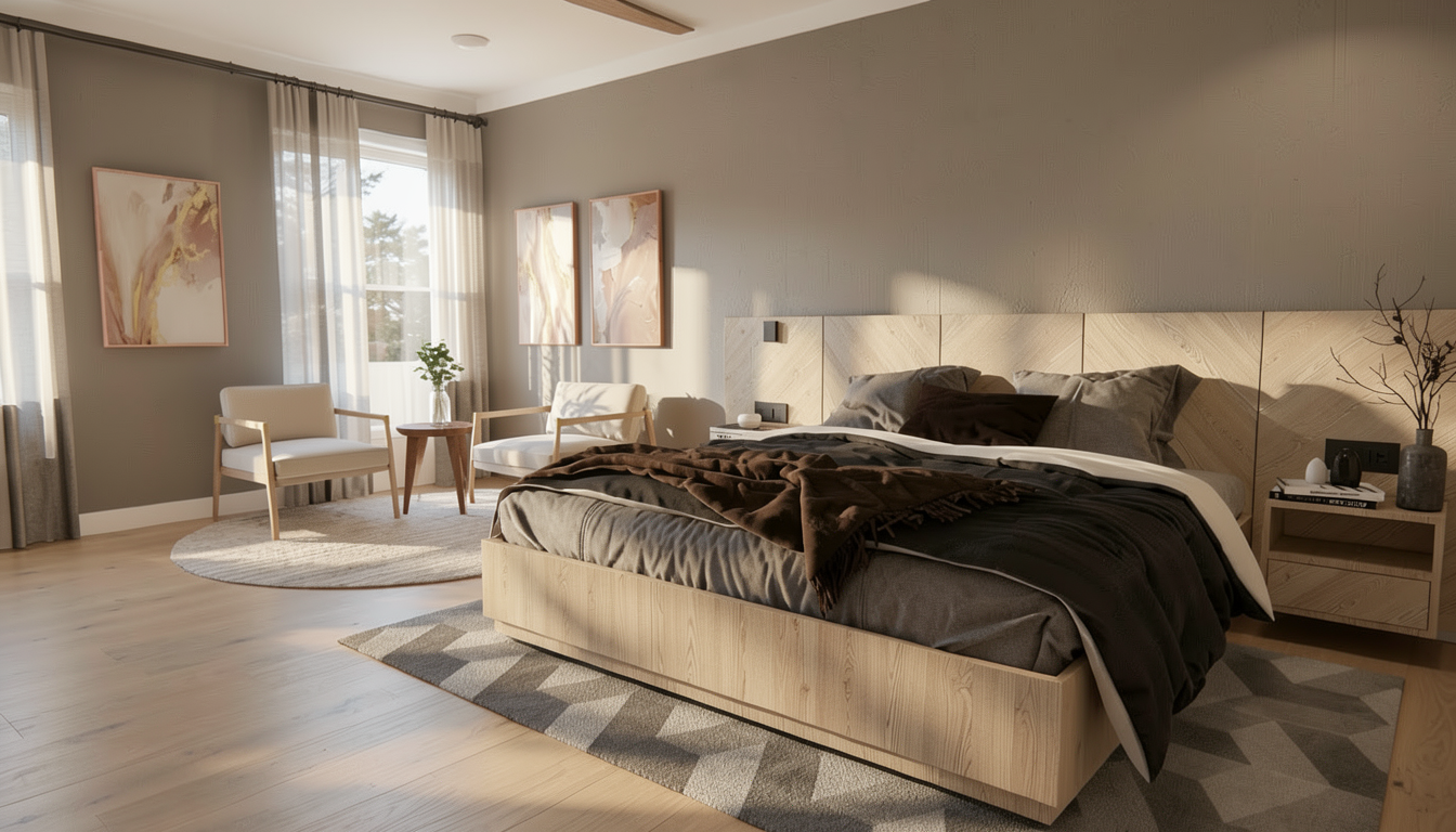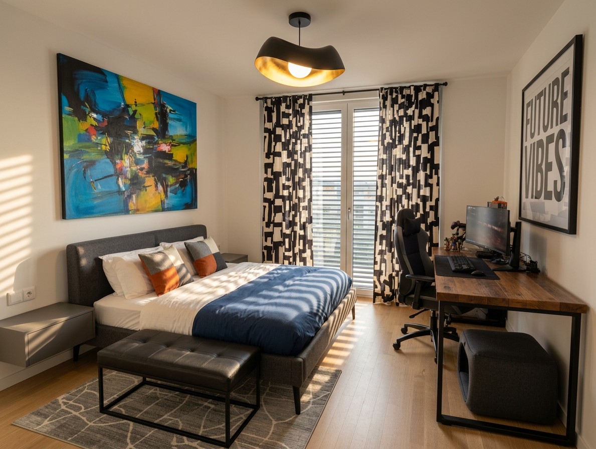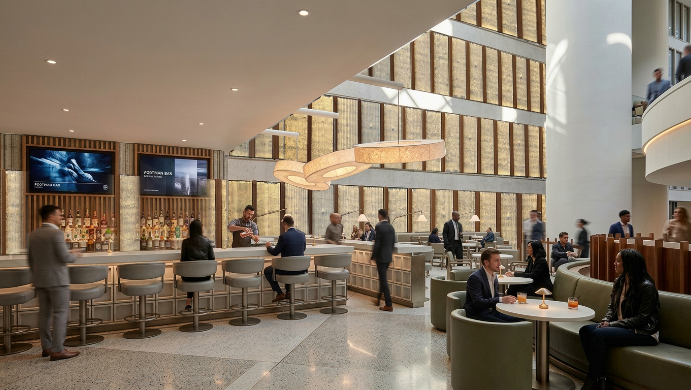 maintain proportions and architecture of input image improve lighting and materiality make lighting on back stripe wall more evenly illuminated