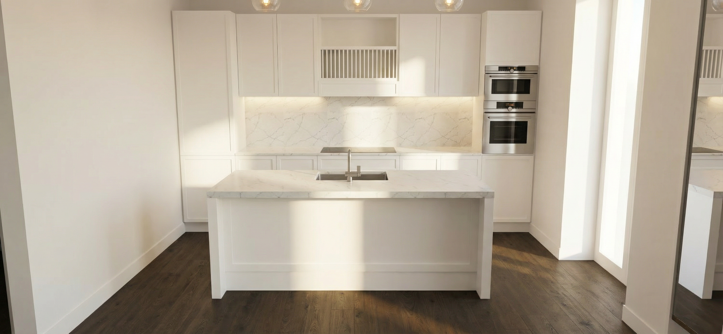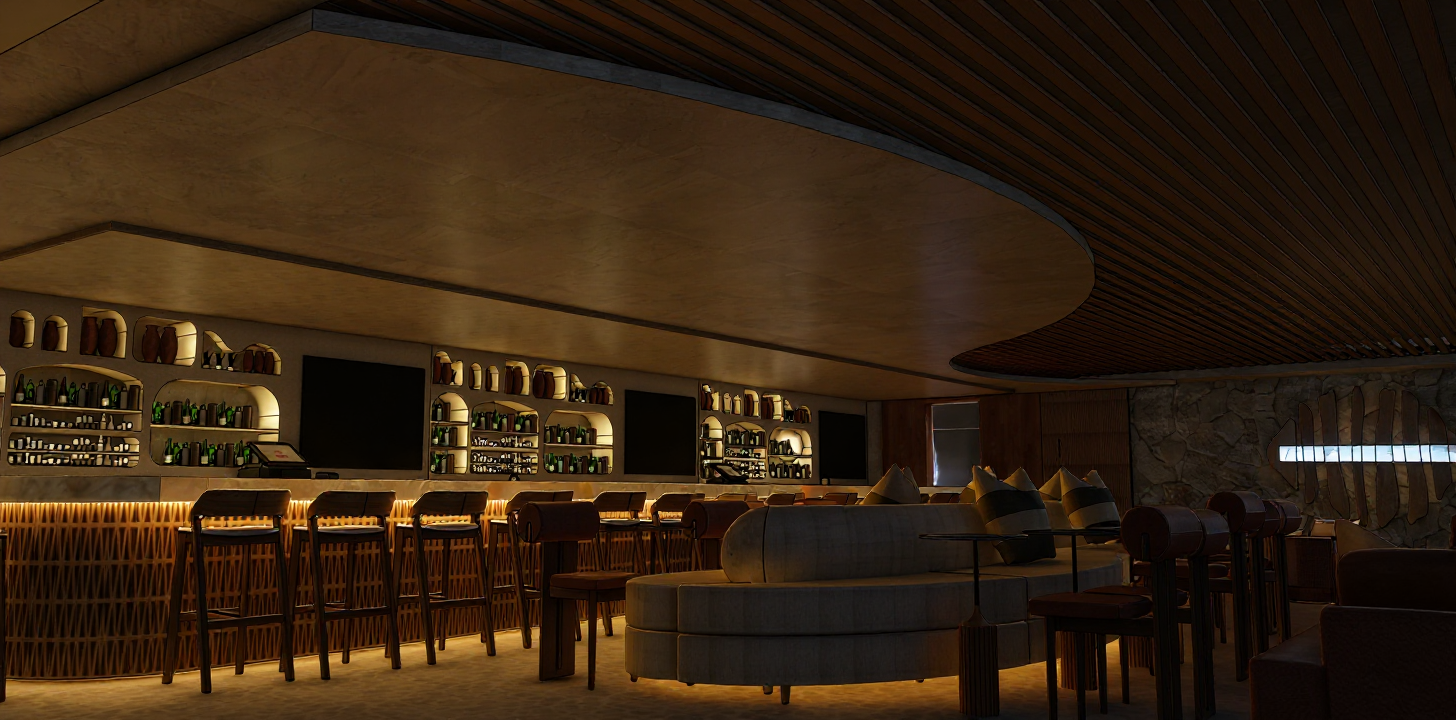 keep tile pattern on wall and floor wood cabinet with subtle jute insert in the shaker profile matte copper plumbing fixtures arch above vanity mirror light with strip lighting pot lights in ceiling