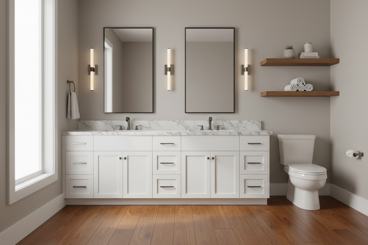 tu suis exactement cette architecture et emplacement des modules le long du mur de la douche il y a un meuble vasque nous somme dans un chalet extra luxe contemporain au mur je veux la r f rence suivante crema d orcia select nagi de chez salvatori au dessus des toilettes c est une fenetre garde l architeture de l image au sol je veux un parquet miel en chevron on est dans du haut luxe il faut que ce soit l gant et raffin la fenetre garde la a la meme taille que sur limage derriere la douche il y a une gaine et donc les toilettes semblent un peu en retrait