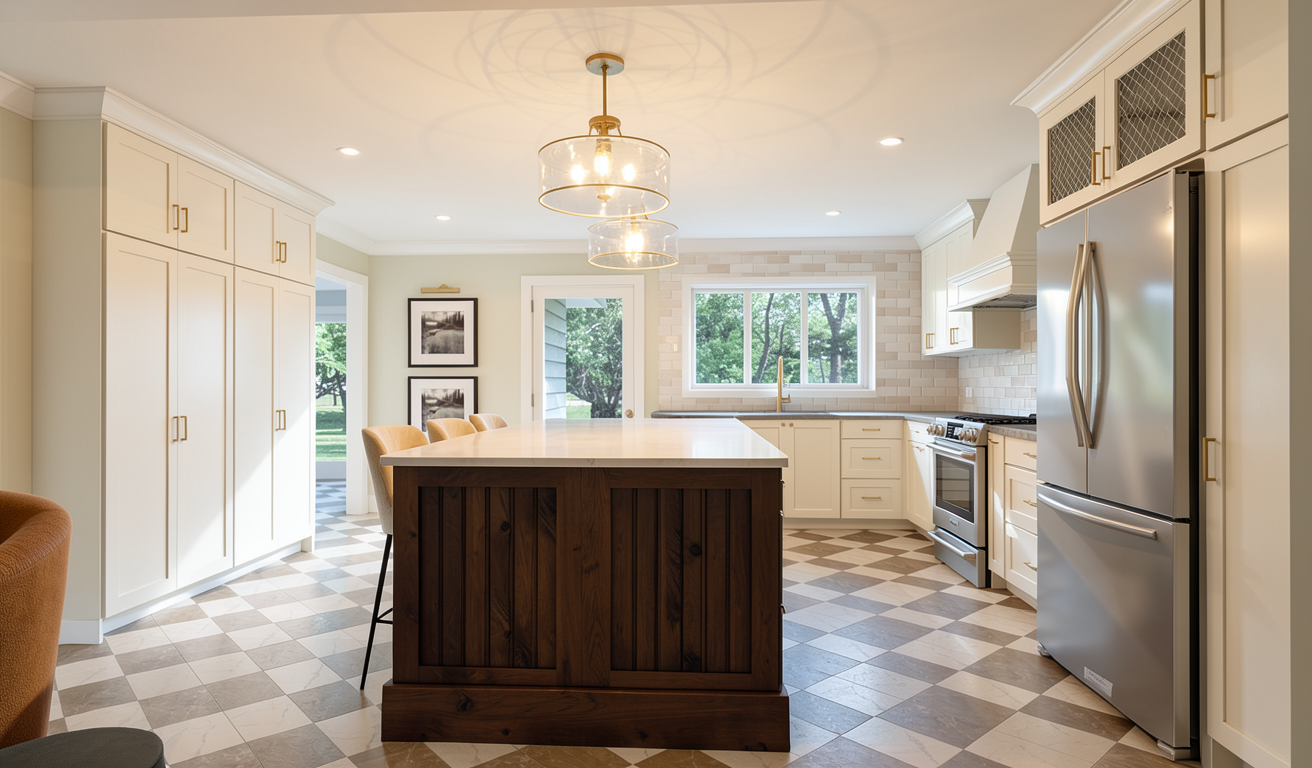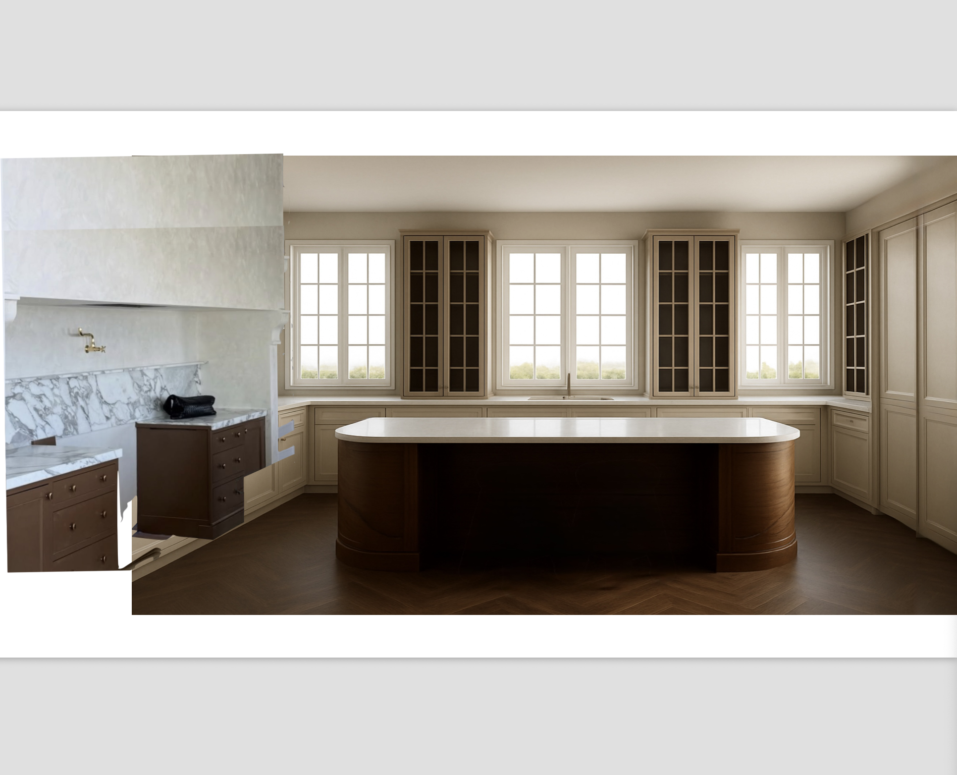 interior shot merge stove concept to left with kitchen and add stove in empty space