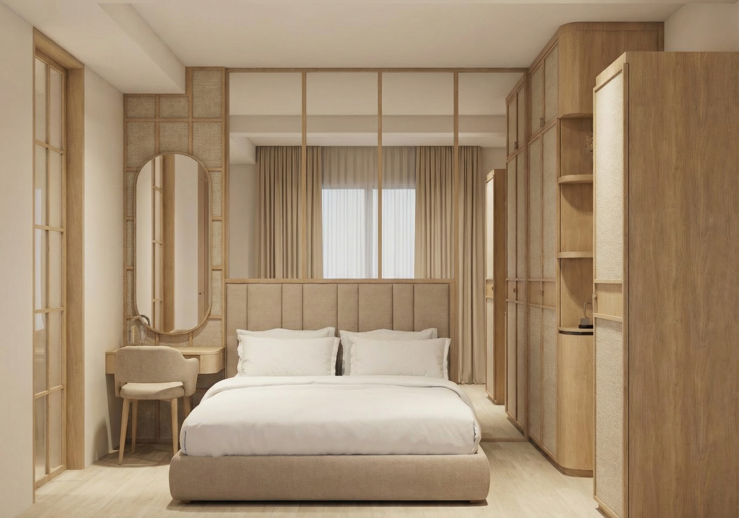 tambah indirect light diatas farme headboard yang diatascushion cahayanya arah ke cermin