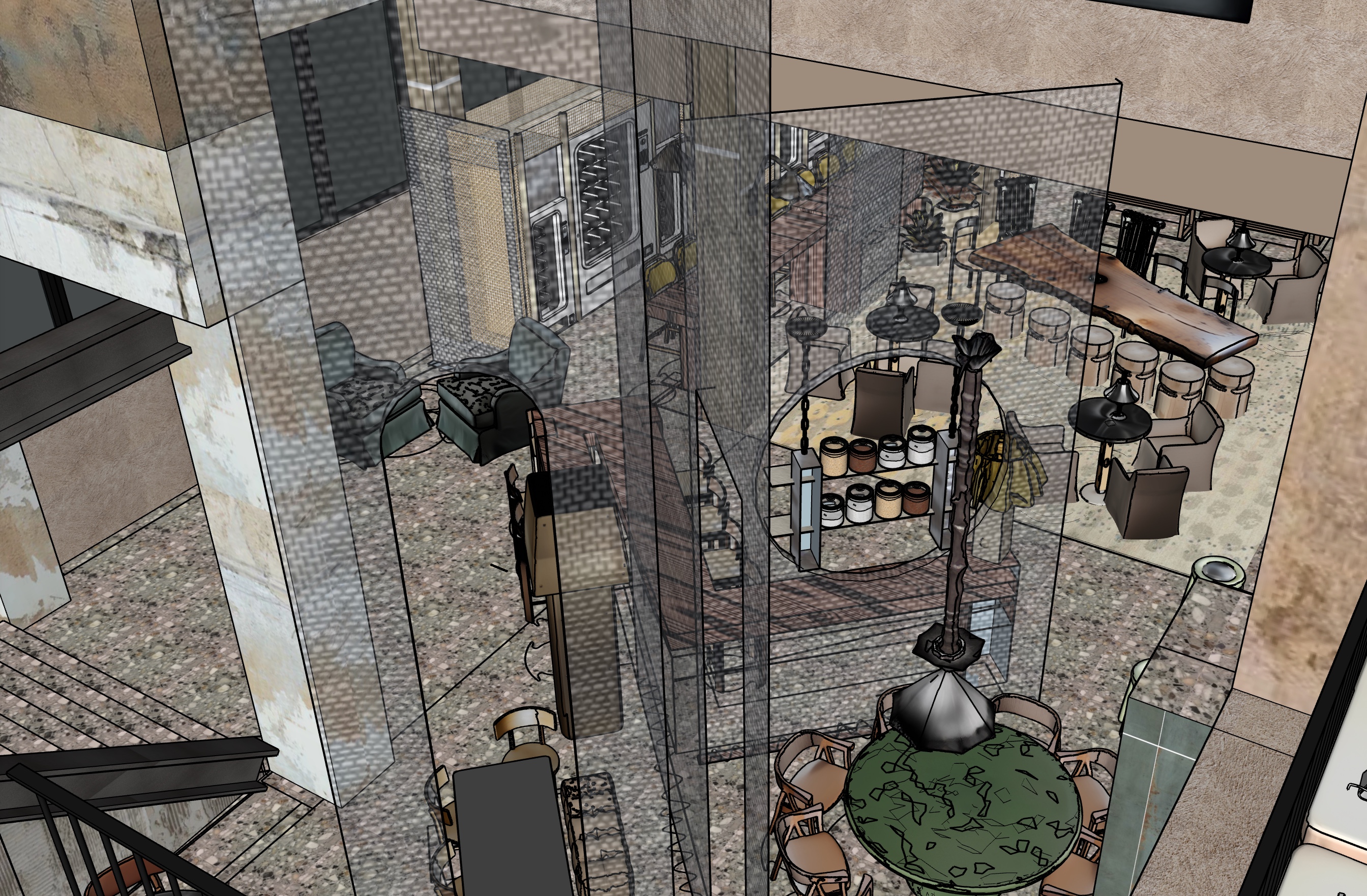 make photorealistic textural finishes linen curtains very see through to centre glow to lights