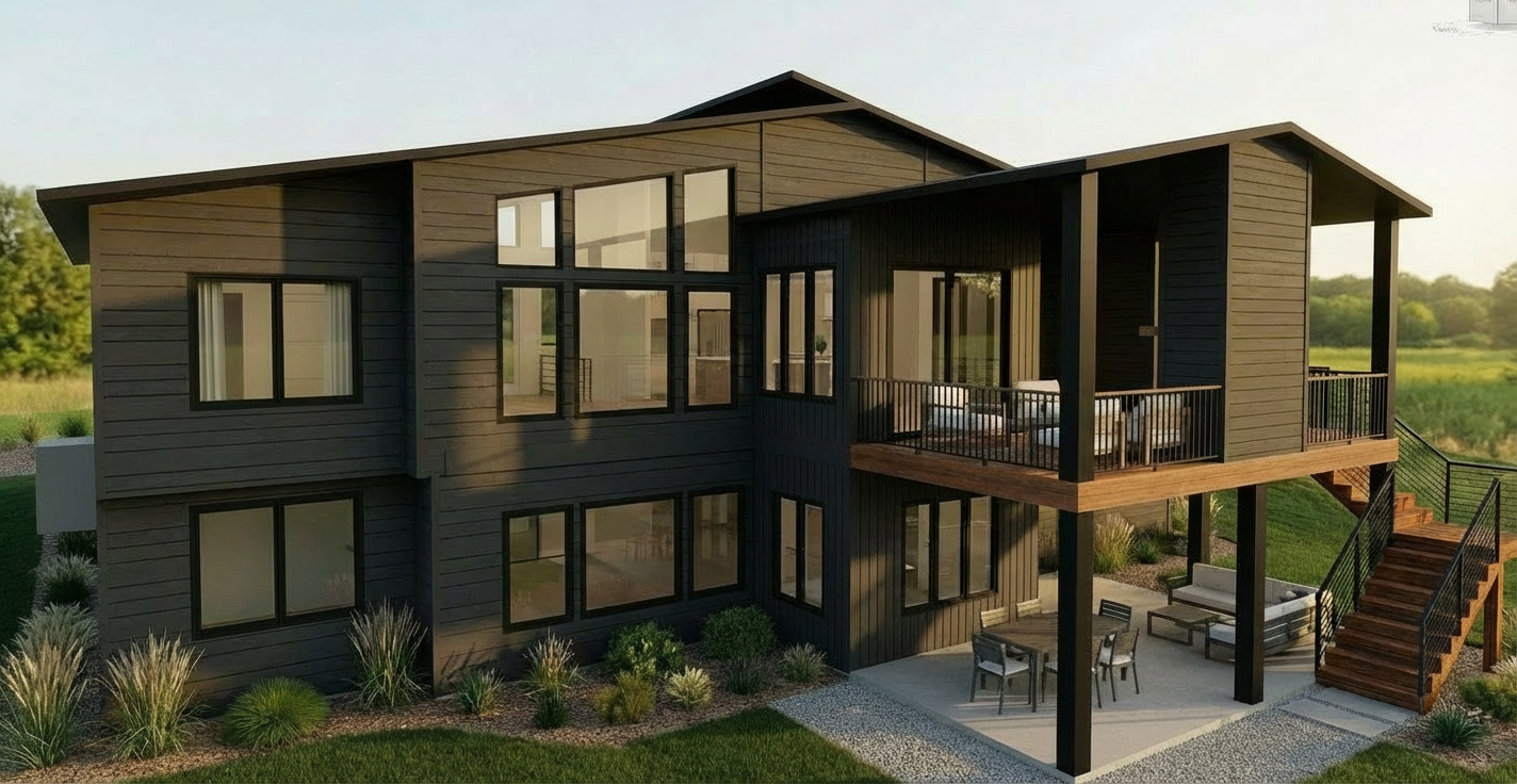 change the deck fireplace to be wrapped in white stacked stone