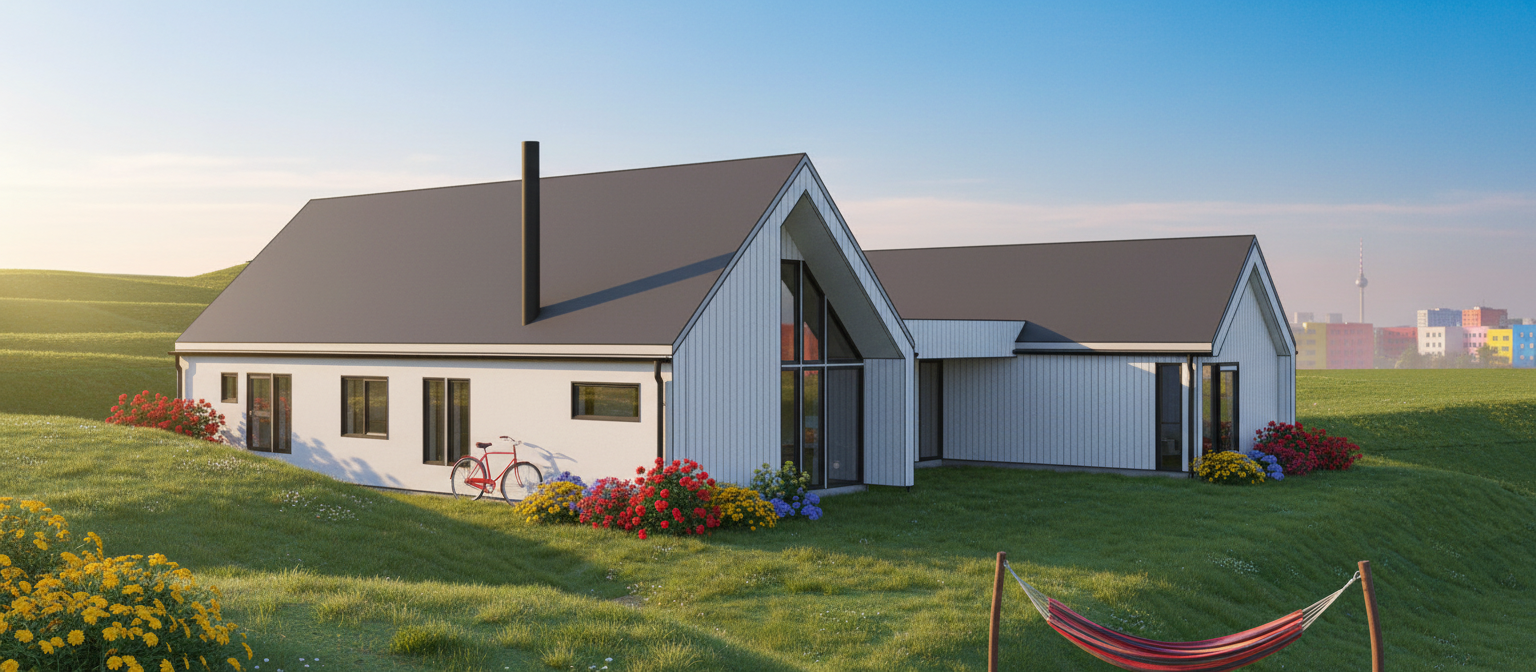 erstelle eine geordnete gartenanlage rechts neben dem hauptgeb ude befindet sich eine garage bitte erstelle ein garagentor in die ffnung der garage