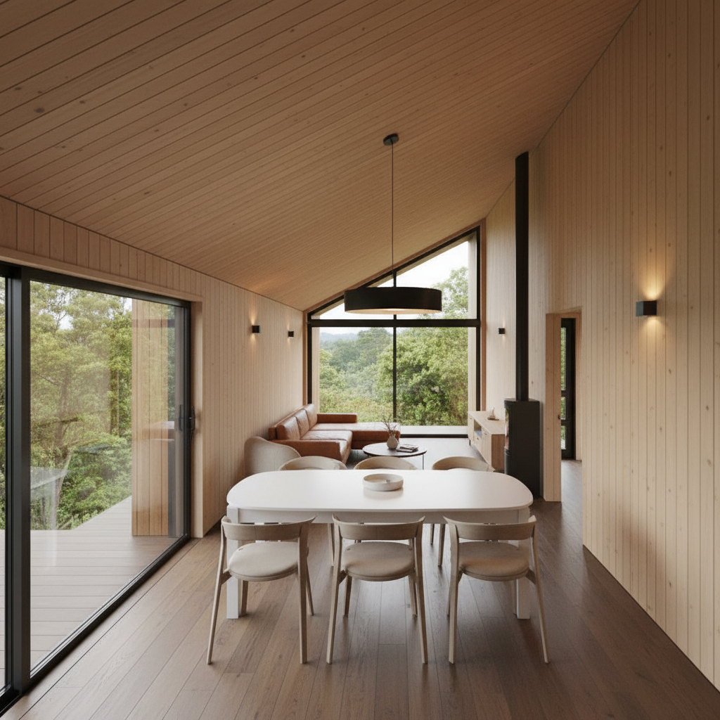 render a modern living room with an elegant marble wall featuring subtle gray veins include a large sleek black flat screen tv mounted on this wall design a wooden media console in rich walnut brown below the tv to the left add a tall illuminated display cabinet with warm lighting and glass shelves incorporate a plush beige curtain on the window to the left allowing gentle natural light the floor should be a dark oak wood adding warmth to the right include wall panels in a muted cream color and create a smooth curved wall section with vertical grooves add a minimalist sculpture in a light stone color on the console use soft warm lighting from the ceiling to create a cozy and inviting atmosphere the walls with panels are more on a gray side not beige and all furniture besides wooden parts add some books on shelves