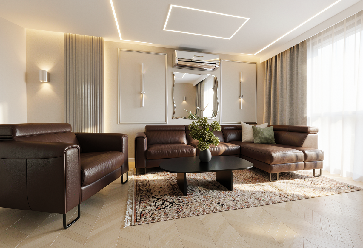 leave everything but make the vertical strips on the wall white and remove the lamp next to them change the lamp above the sofa to a different one
