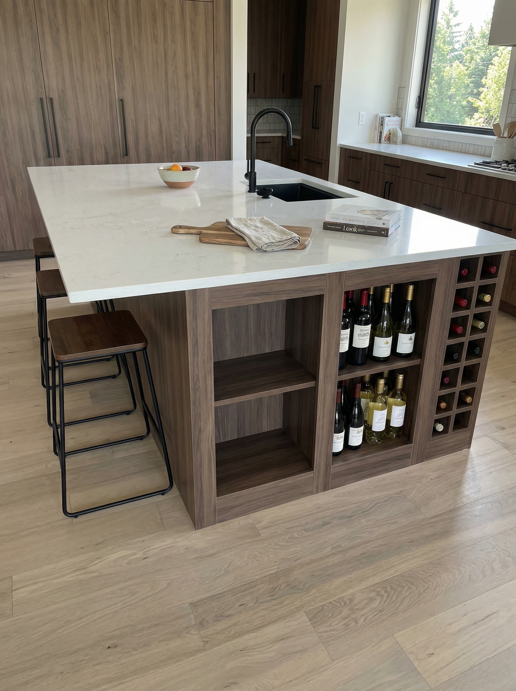 necesito una imagen fotorrealista de este dormitorio mejora texturas y a ade luz natural suave entrando por las ventanas ajusta el balance de colores ahora una vista de noche con la luz perimetral de techo encendida