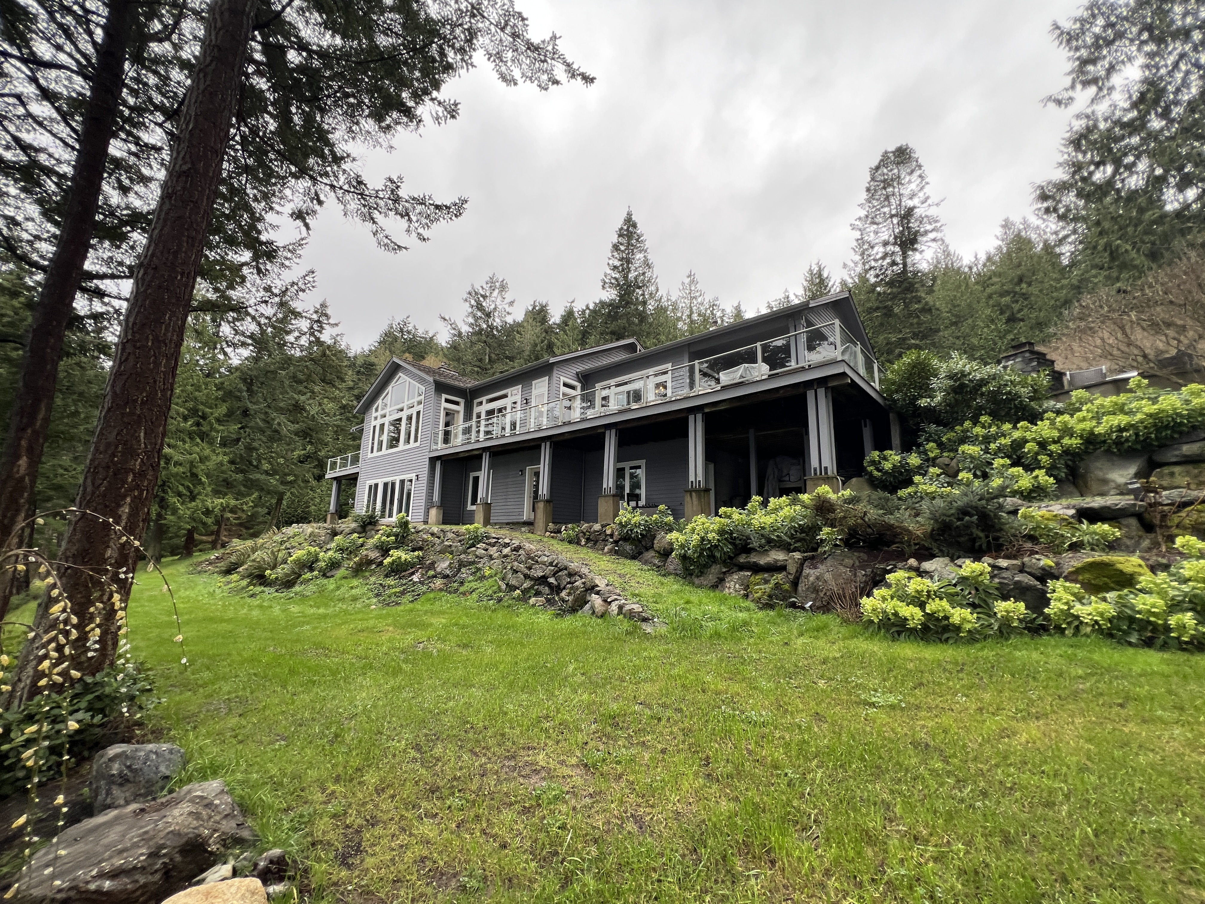 change finishes to a pacific northwest modern style larger windows with black frames keep roof lines the same