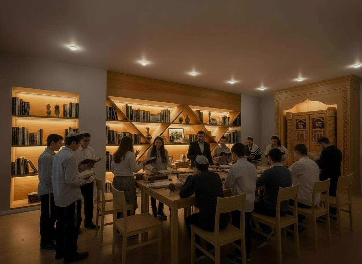 the wall that the bookcase and niche are should have a finish of the same wood as a laminate of wood on top of the wall so the whole wall looks uniform