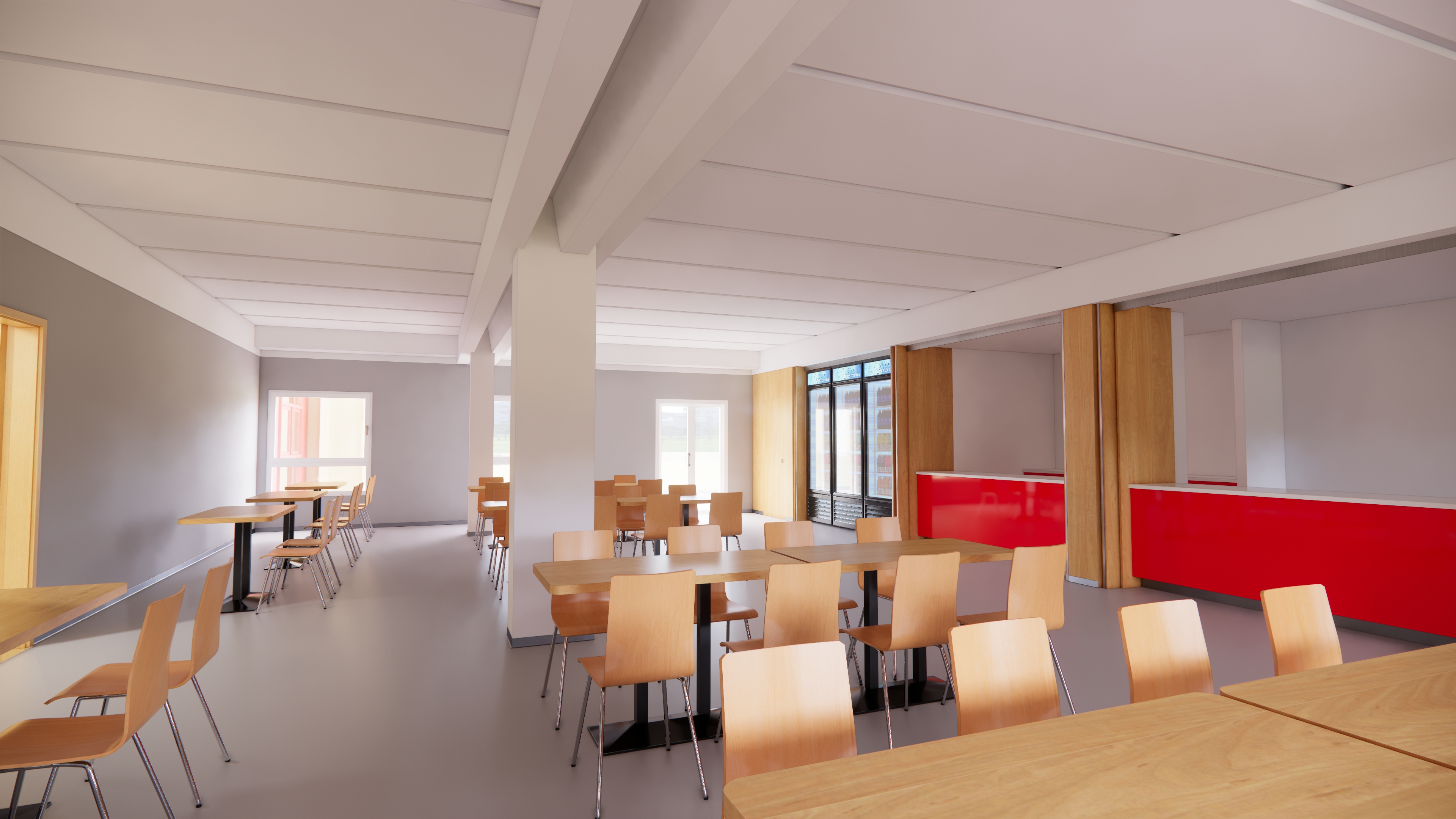 art deco interior shot tkez a p csi e on iroda p let alkalmazottainak vil gos b kkfa asztalok s sz kek vil gos b kkfa kiad pulth tul a b f n l h t k vil g tanak tele innival kkal piros konyhapulton teleket oszatnak ki vegpolcokra helyezve a mennyezet feh r s mindef le k belek cs vek vannak sz pen elvezetve s l mp k l gnak lefel megvil g tva a teret a falakon keretbe helyezett n v nyzet dekor ci t l tunk architecture