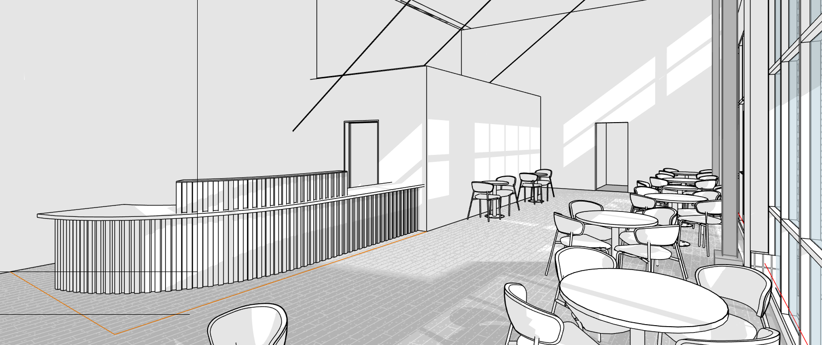 make this realistic with mid century modern finishes walnut woods and coffered elements