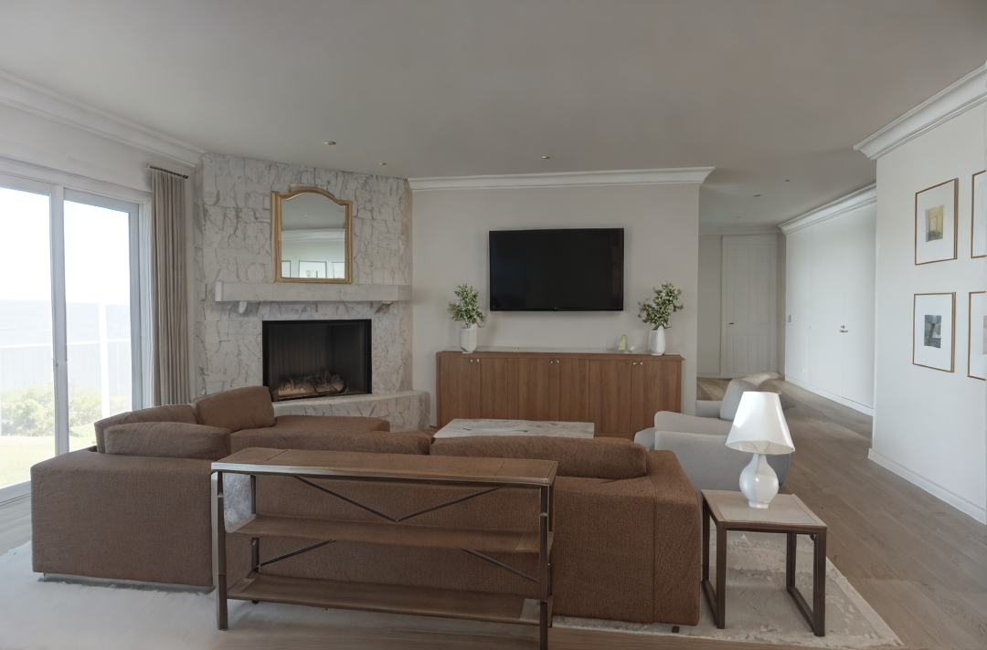 add white oak flooring clean cabinets remove construction materials add under counter wine fridge in the hole style shelves as bar