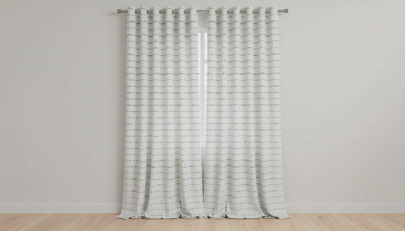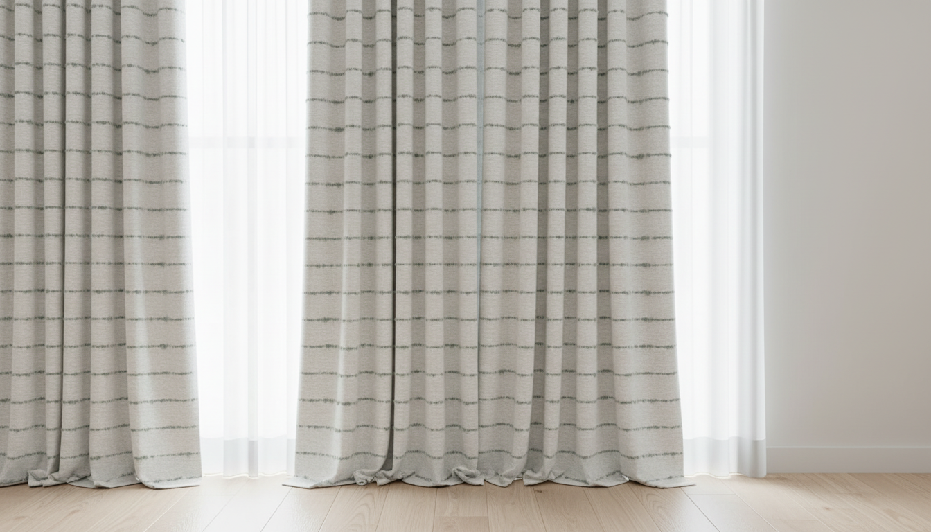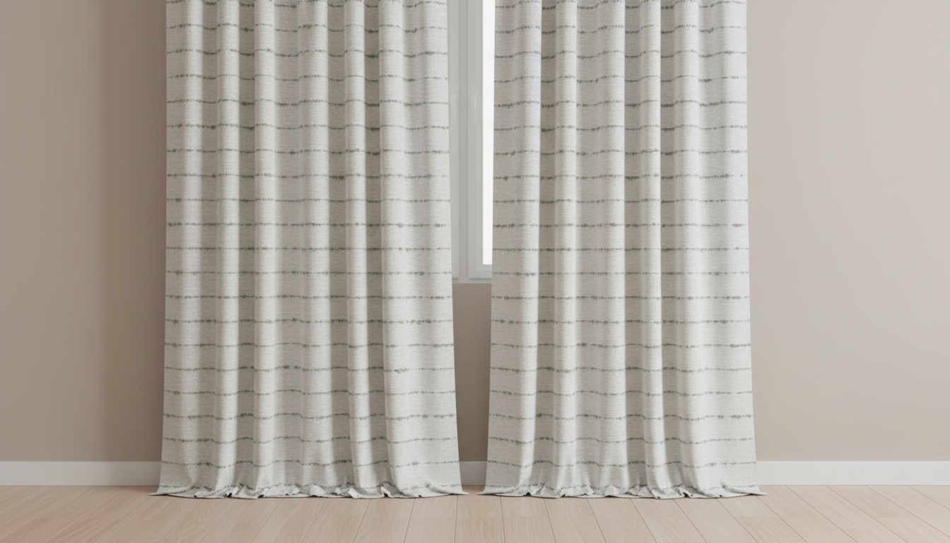 this is a soft chenille fabric featuring sage green woven yarns in horizontal stripes that subtly fade in and out creating a rich texture and a gentle dynamic feel use this fabric sample to create drapes keep the lighting low and even so you can see the color and texture of the fabric on the drapes the image should show the full length of the drapes you should not be able to see the curtain rod at the top