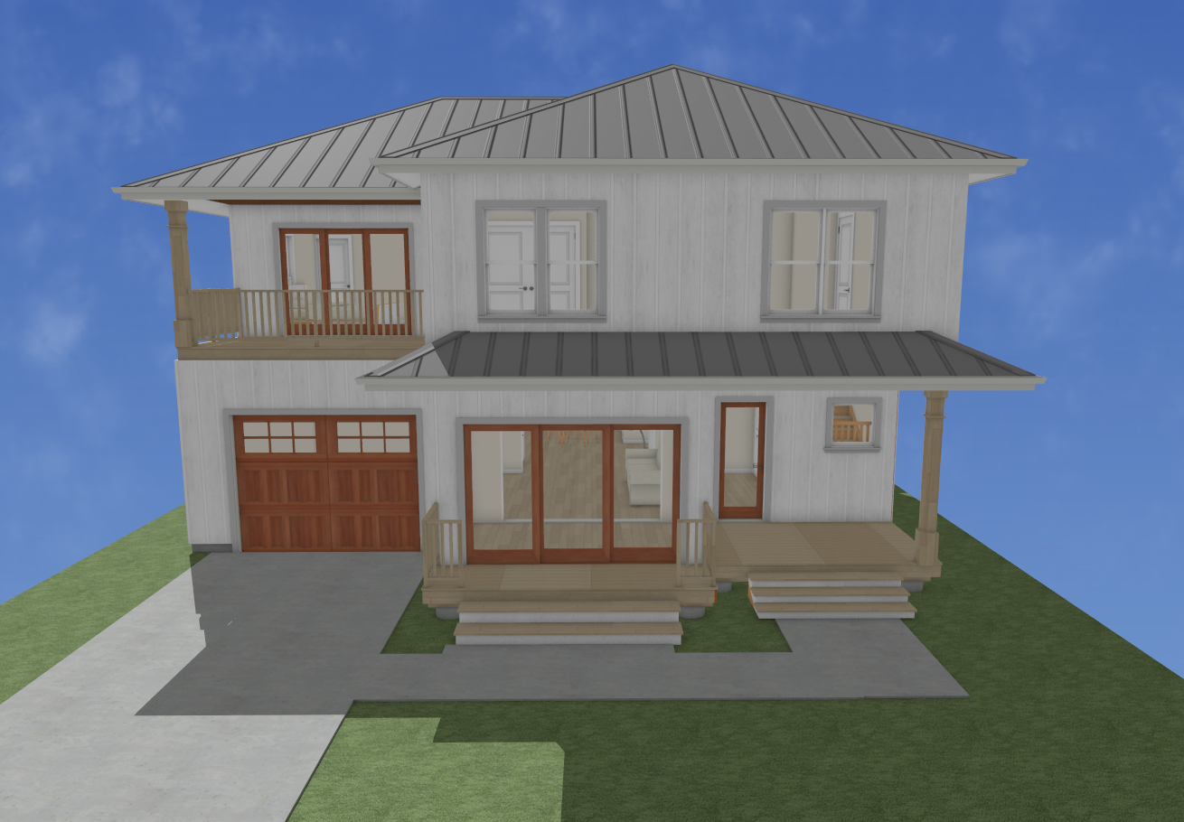 create a photo realistic image of this home in modern farmhouse style with landscape in tropical florida
