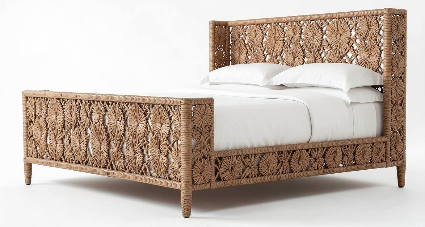 rattan floral brown unique weaving inspired bed white background