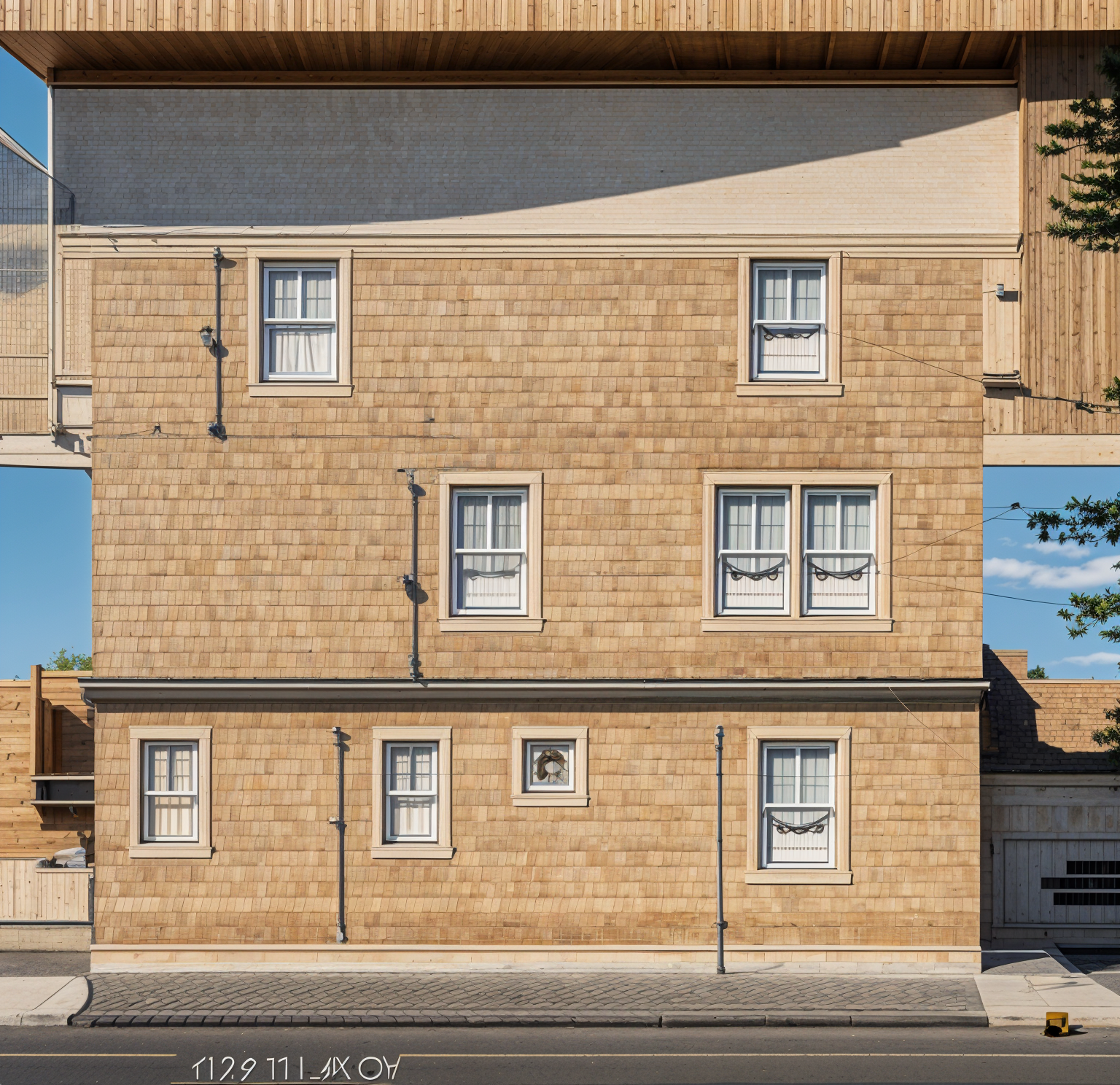 this is a renovated building in a small town in new york upstate lighting should be evening twilight not too dark facade matierals are wood with contemporary details