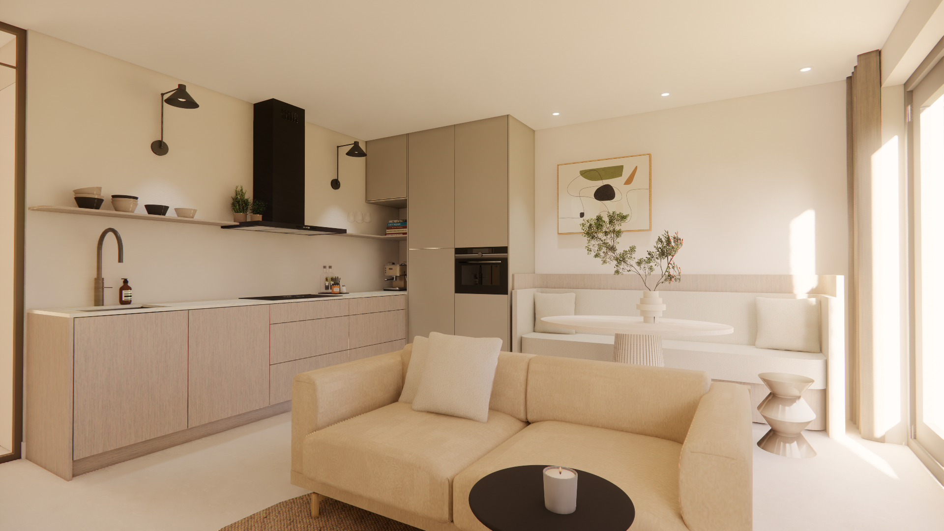modernist interior shot neem de materialiteit letterlijk over ook de kleuren maak het alleen meer realistisch architecture