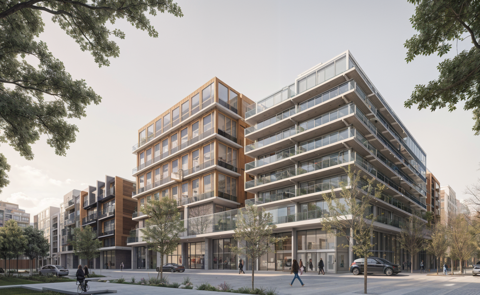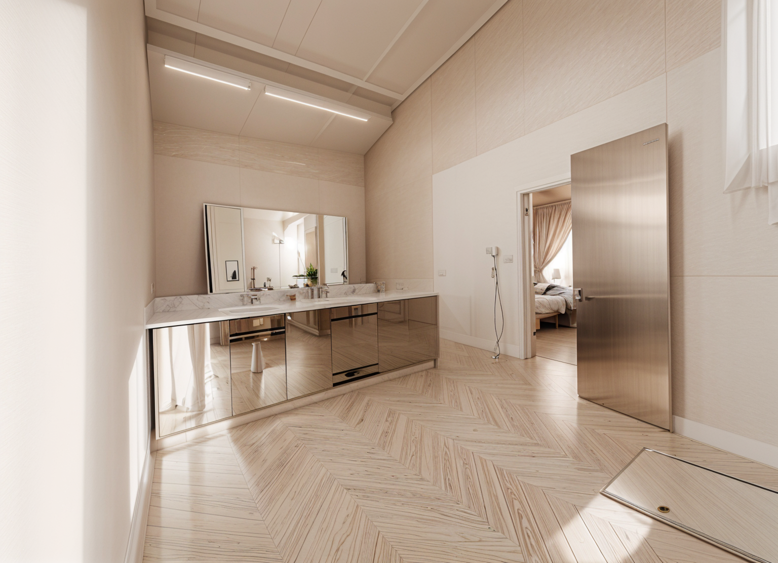 add a glass partition wall above the small kitchen backsplash with wood frame architecture