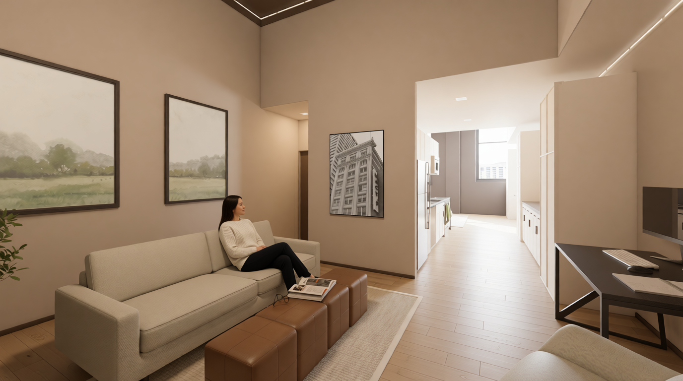 add a person sitting on the couch reading a book