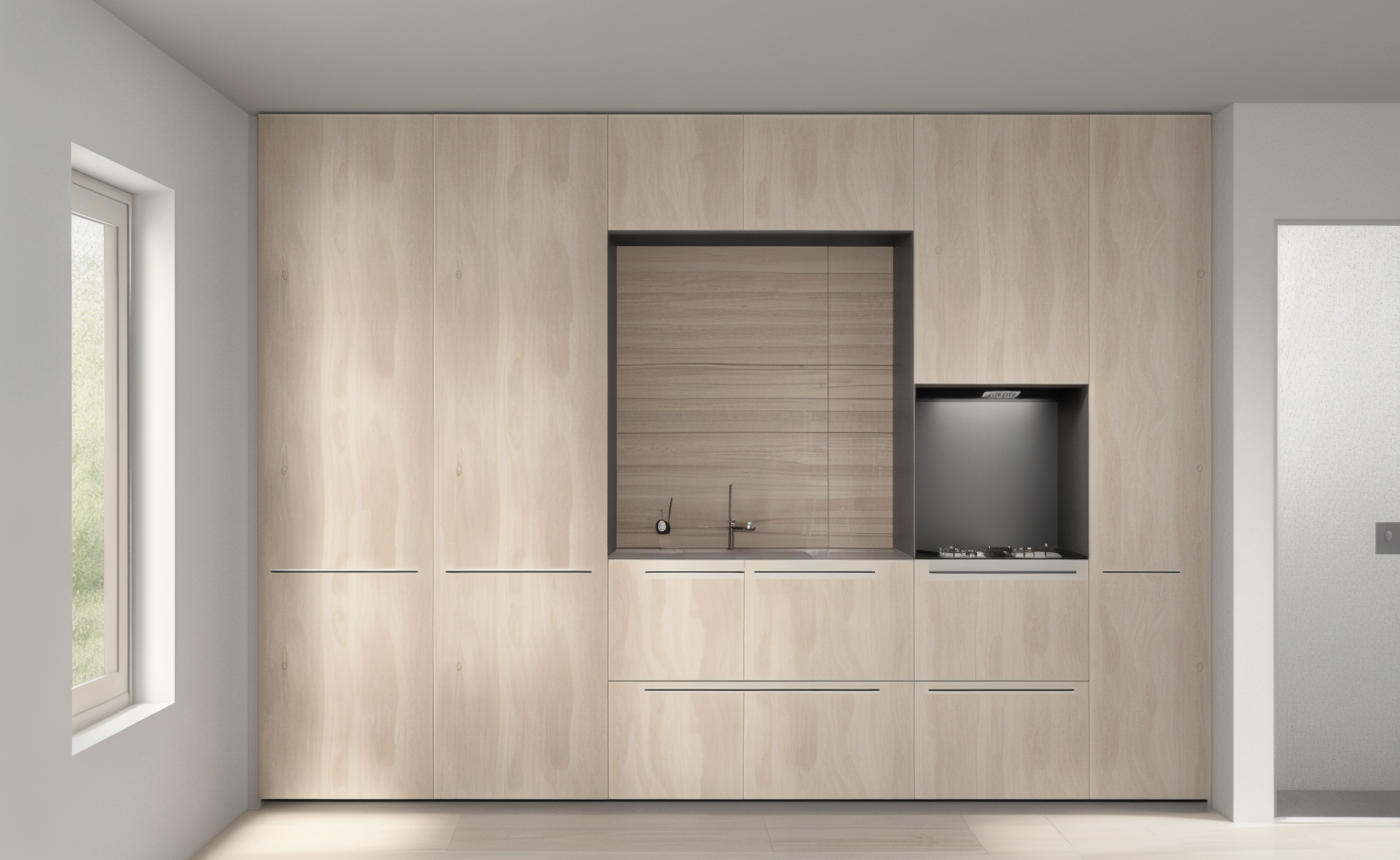 create a cozy and modern 3d isometric interior living space with a minimalist design use warm natural wood tones for the flooring and walls complemented by creamy white walls to add brightness include soft beige and earthy tones for the seating area and a light gray for the countertops enhance with light pastel green for any accents or small furniture pieces the atmosphere should be inviting and serene with abundant natural light streaming in add abstract art on walls making the overall ambiance feel peaceful and elegant architecture