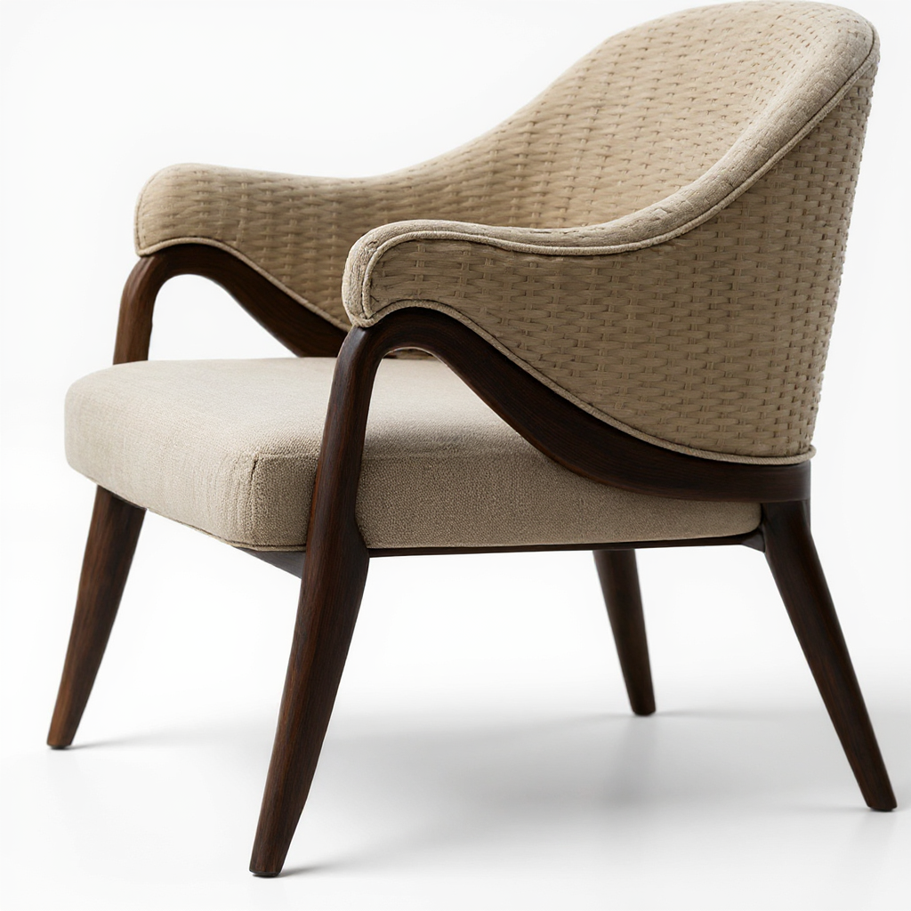 rattan rope weaving back upholstered seat and wooden base