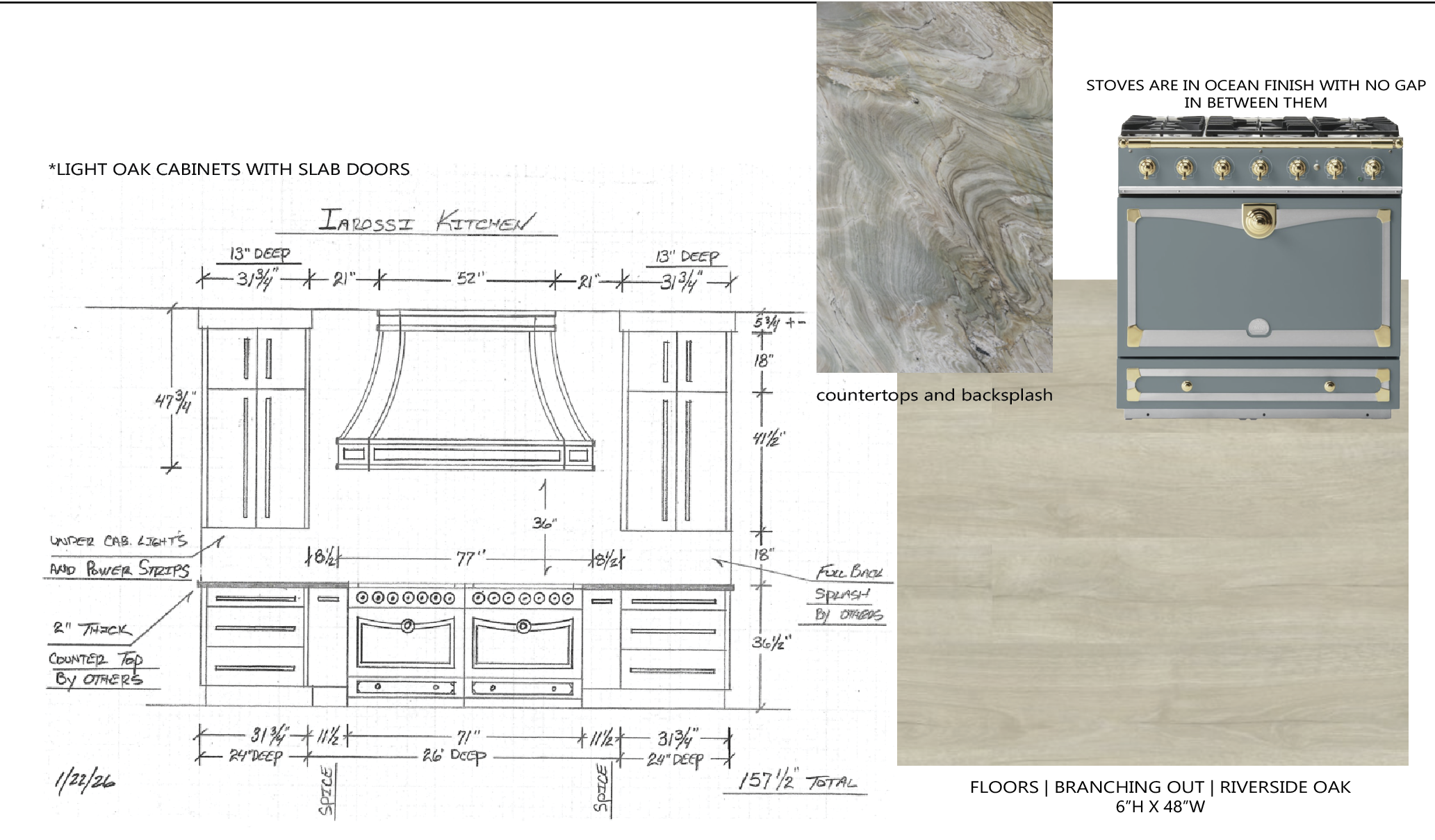 there will be 2 of those stoves next to each other with no gap in between the stone is for the countertops and backsplash the flooring material is also presented on the page