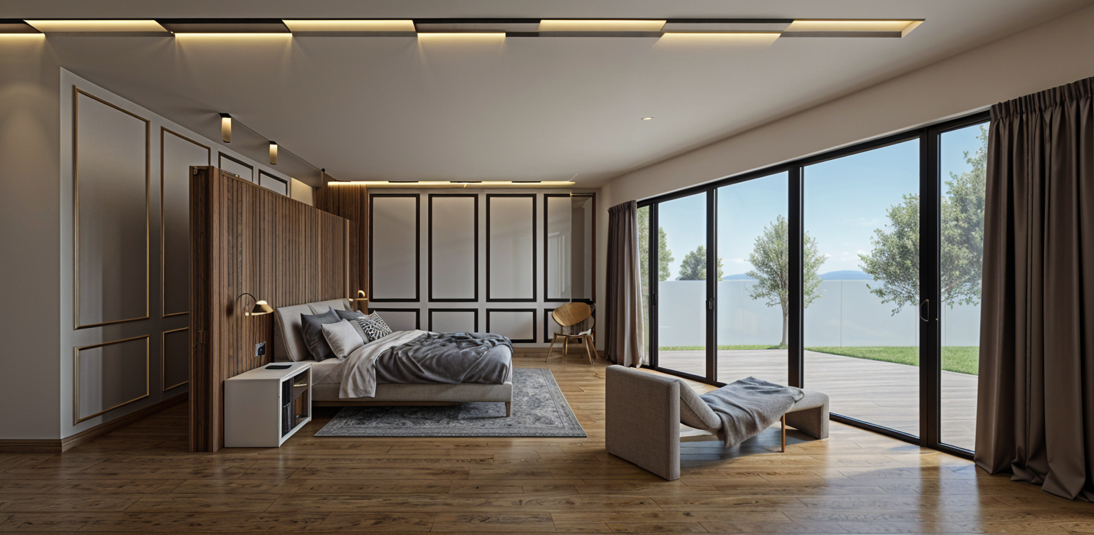 keep geometry render a modern laundry room with a sleek minimalist design the washing machine and dryer are a matte charcoal gray set against a backdrop of pristine white cabinetry the cabinet handles are brushed stainless steel the countertop is a smooth light gray concrete the floor features large glossy gray tiles on the shelves neatly folded towels in soft gray tones the room is illuminated with warm ambient lighting creating a calm and inviting atmosphere sunlight filters in softly through a partially open window casting gentle shadows across the room