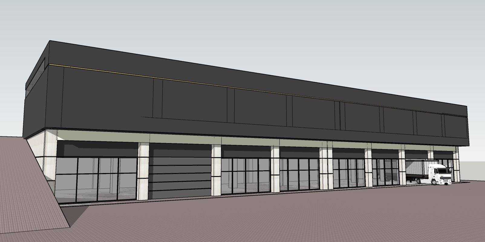 modern warehouse archutectural visualization vray render professional light setup led light large loading park lift and truck