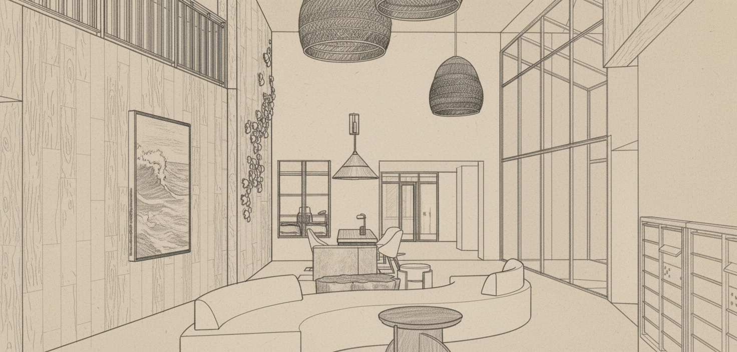convert to photo realistic rendering of conference room maintain architecture and proportions brown ceiling material is felt