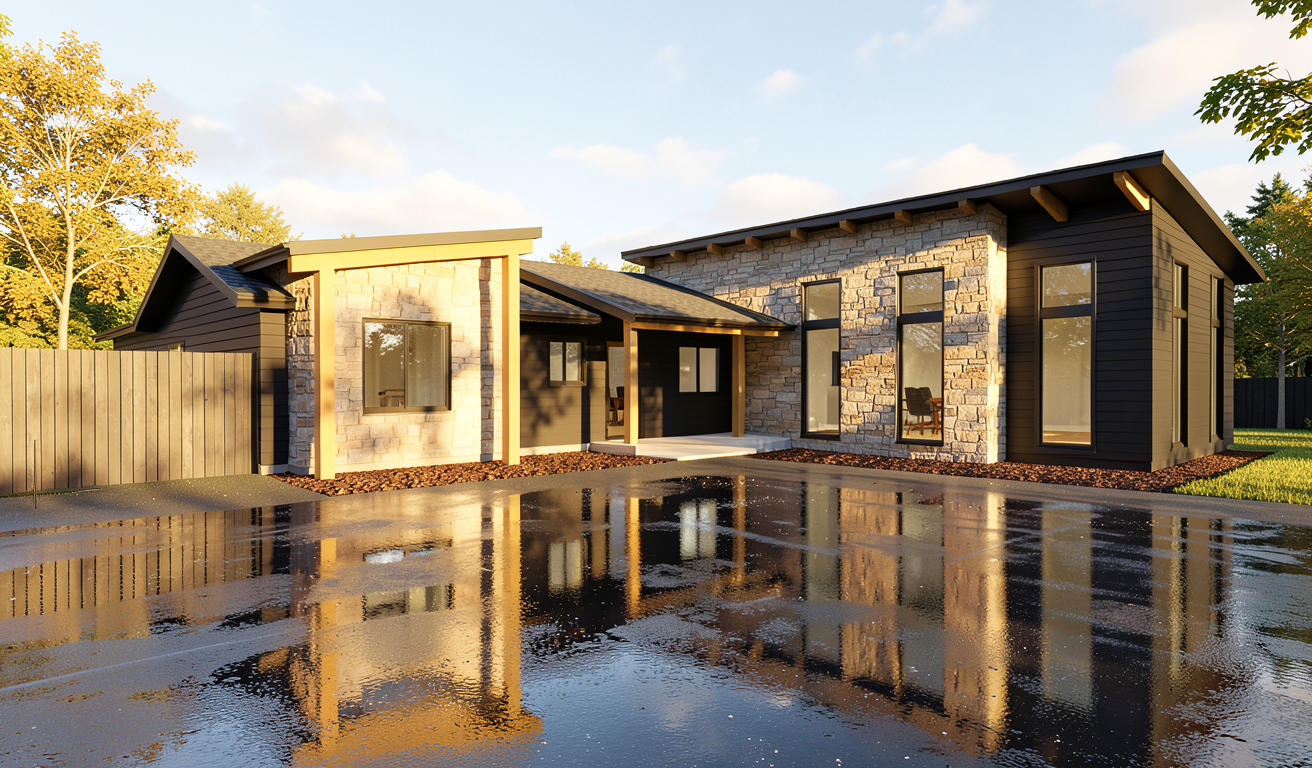 keep everything exactly the same in the rendering do not change the layout walls doors windows shower niche plumbing fixtures wall tile lighting vanity or any materials only change the walls to the paint color shows cahnge the shower floor to the tiles label shower floor tile 1 x1 lastly make the rest of the floor and wall tiles a light gray with little vein that are very faint keep everything else exactly the same make the final image look like a realistic photo rendering with natural lighting and soft shadows