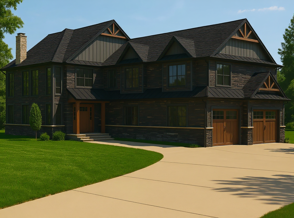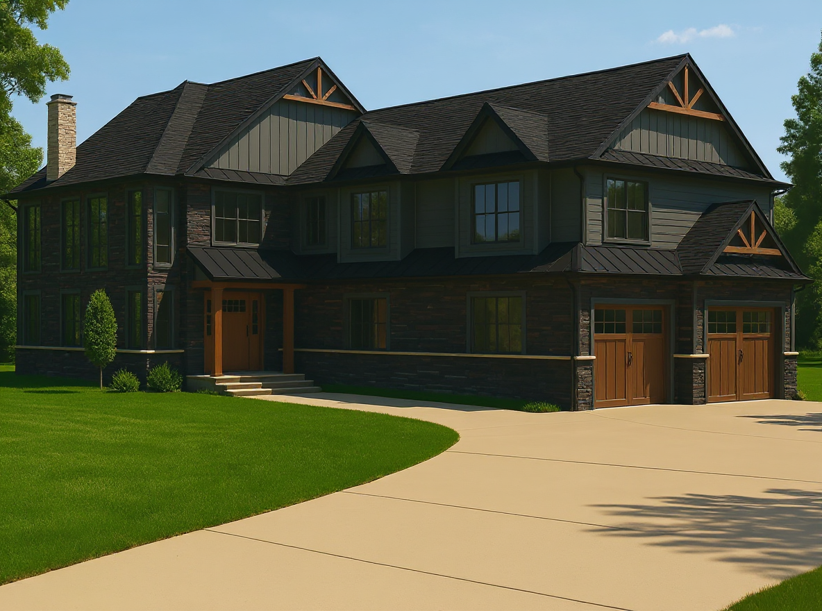 please remove the dotted lines and completed a realistic 3d rendering in natural daylight use a warm white color pallet please make the entire house in warm white brick