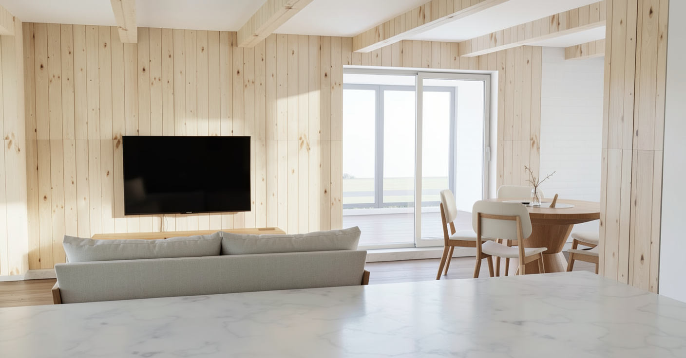 enhance the current materials and create a photorealistic render architectural quality enriching the environment highly detailed textures maintain colors