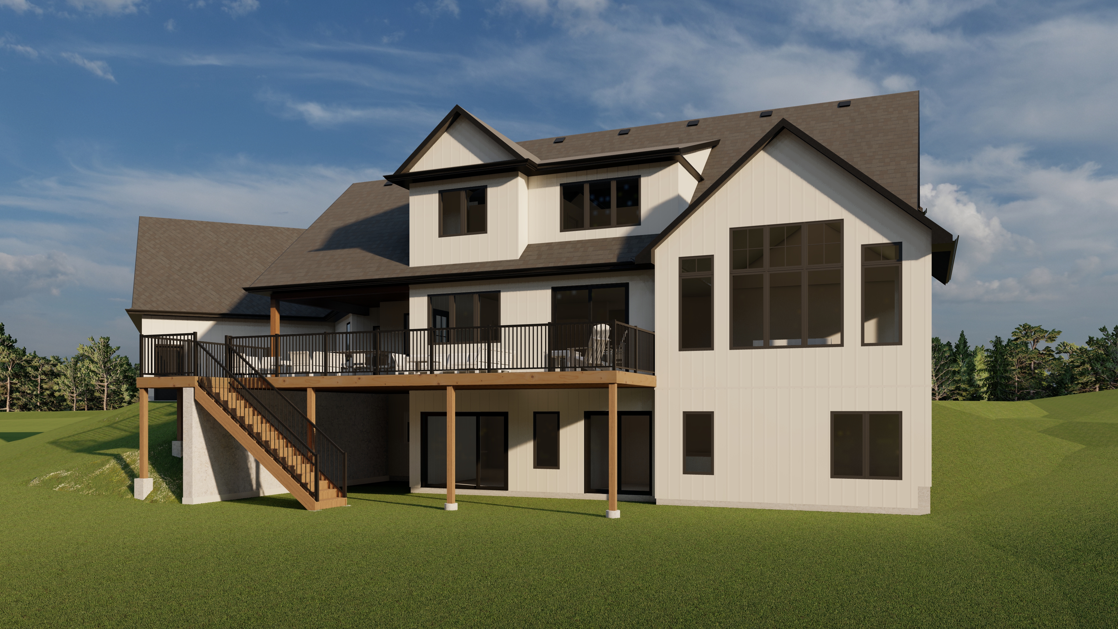 maintain colors realistic grass realistic sky soft shadows enhance landscape make house realistic vertical egg shell white board and batten siding