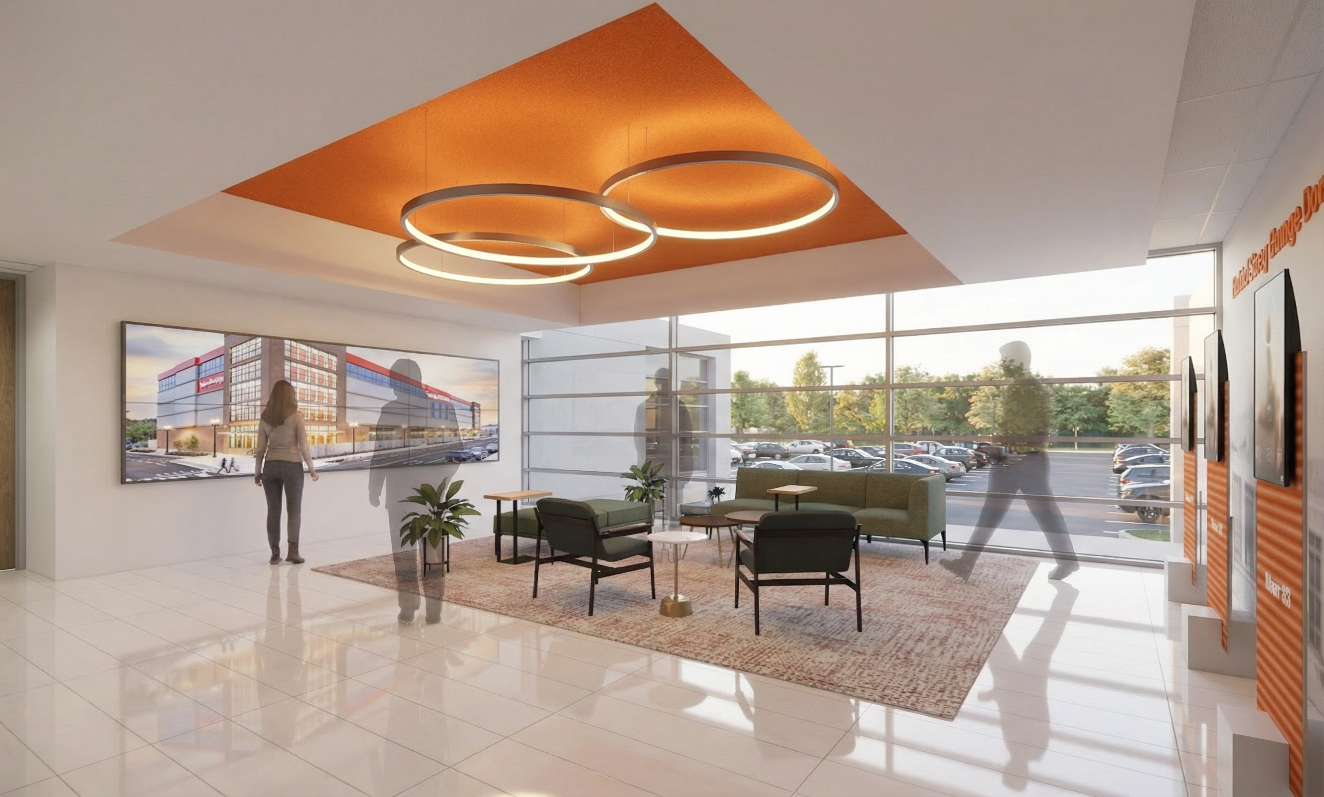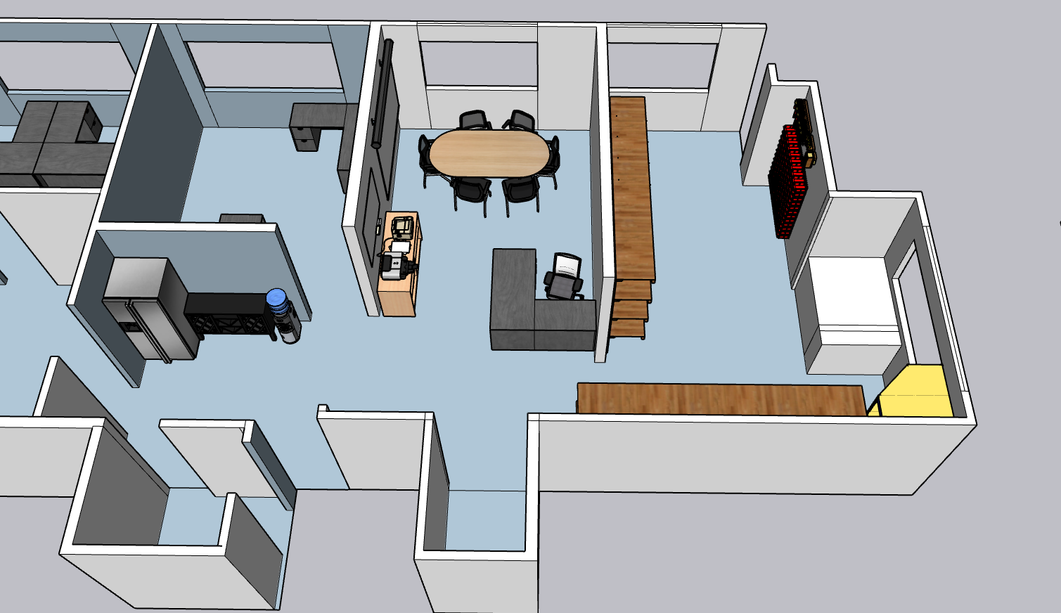 interior shot can you make this office look more realistic with a mid century modern style and design