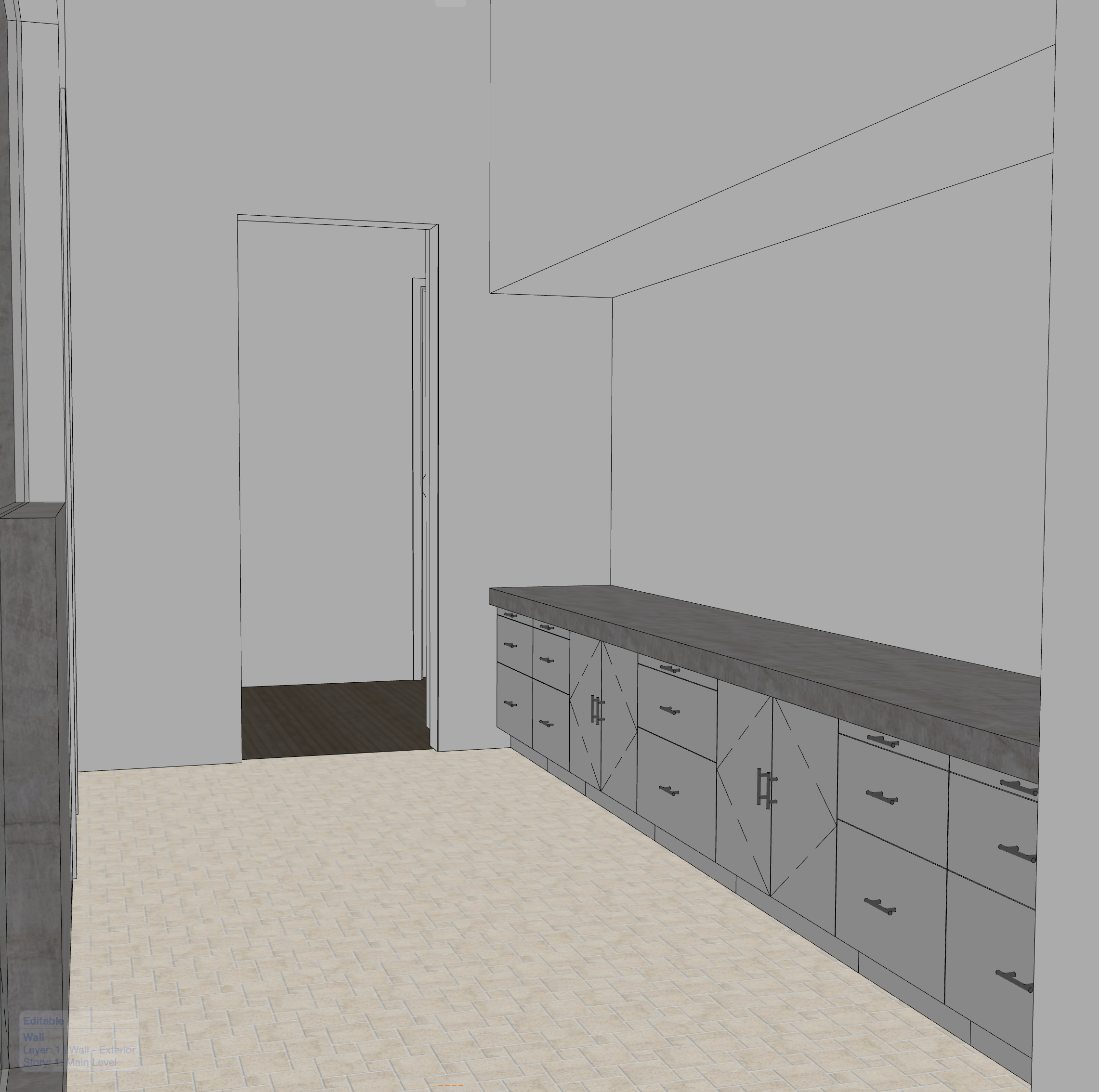 enhanced interior lighting white quartz slab countertop same white quartz slab 6 inch backsplash two porcelain undermount sinks brass deck mount faucets small mosaic limestone tile on floor natural wood white oak simple cabinetry with brass hardware tan plaster on walls wood trim around opening on left with very tall panelled wood header all darker than the cabinetry full width mirror above sinks 3 evenly distributed skinny cylinder frosted glass sconces with one of them centered in ceiling lights in soffit above sinks soft accent lighting underneath the mirror natural medium brown wood flooring beyond threshold on left same darker natural medium brown wood tall baseboard remove faint text box in bottom left corner