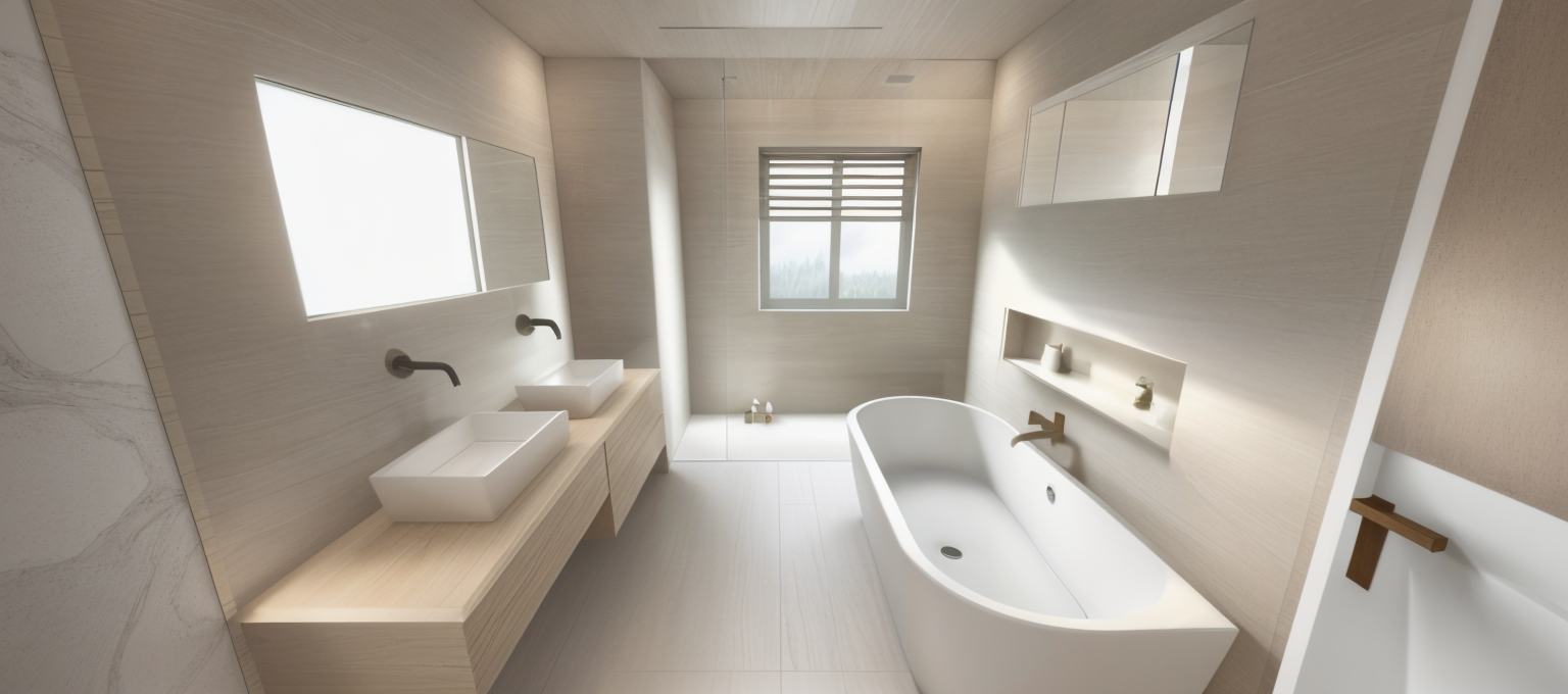 create a photorealistic 3d image of this space with light grey tile flooring and white walls