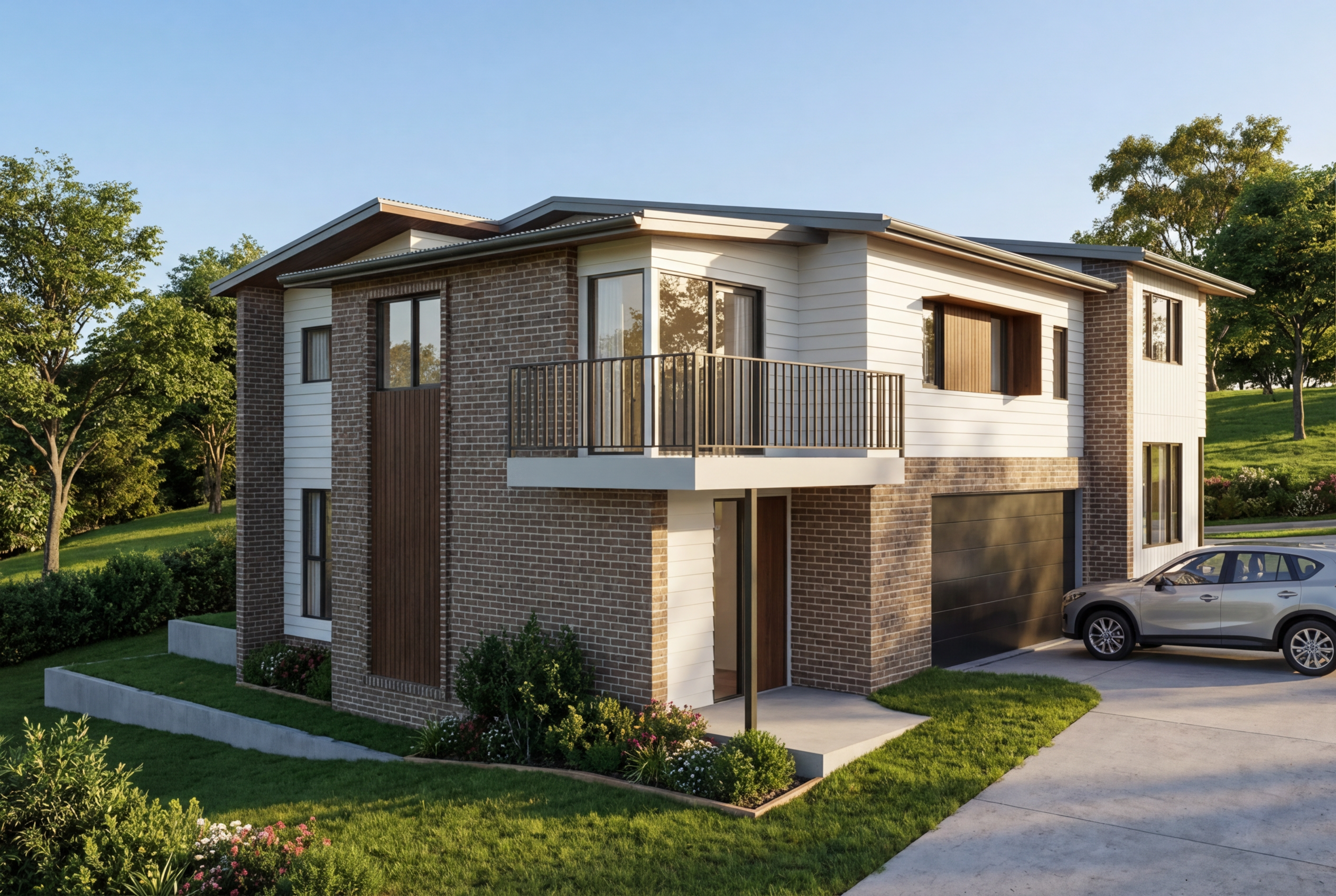create photorealistic rendering of this reading corner add coffee table books under the bench and a italian blue glass vase on right flat table section of the bench keep light oak floors add oak trees and landscaping to exterior keep swivel material blue chenile