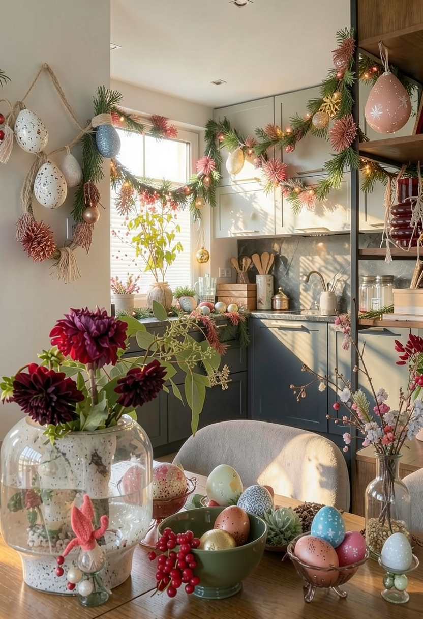 add easter decorations here delicate subtle not too much one table decoration is enough