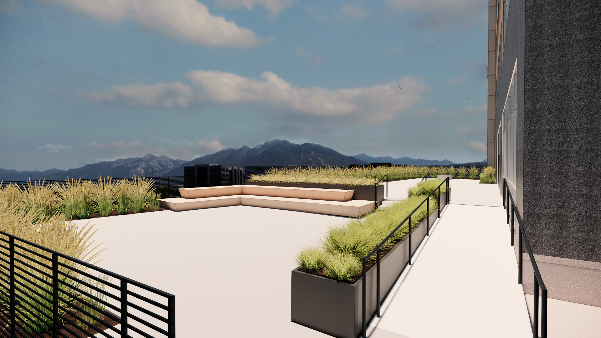 make the white ground exterior concrete and make the stepped wood bench a teak wood board material