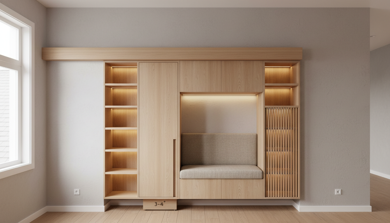 using this floorplan show a rendered elevation of the kitchen wall in clary sage paint on the cabinets tile on the floor sink and faucet and dark countertops