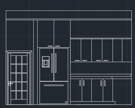 render the inside of this kitchen rendering using a clean modern natural color pallete like dark wood for the cabinets and white tile blackslash