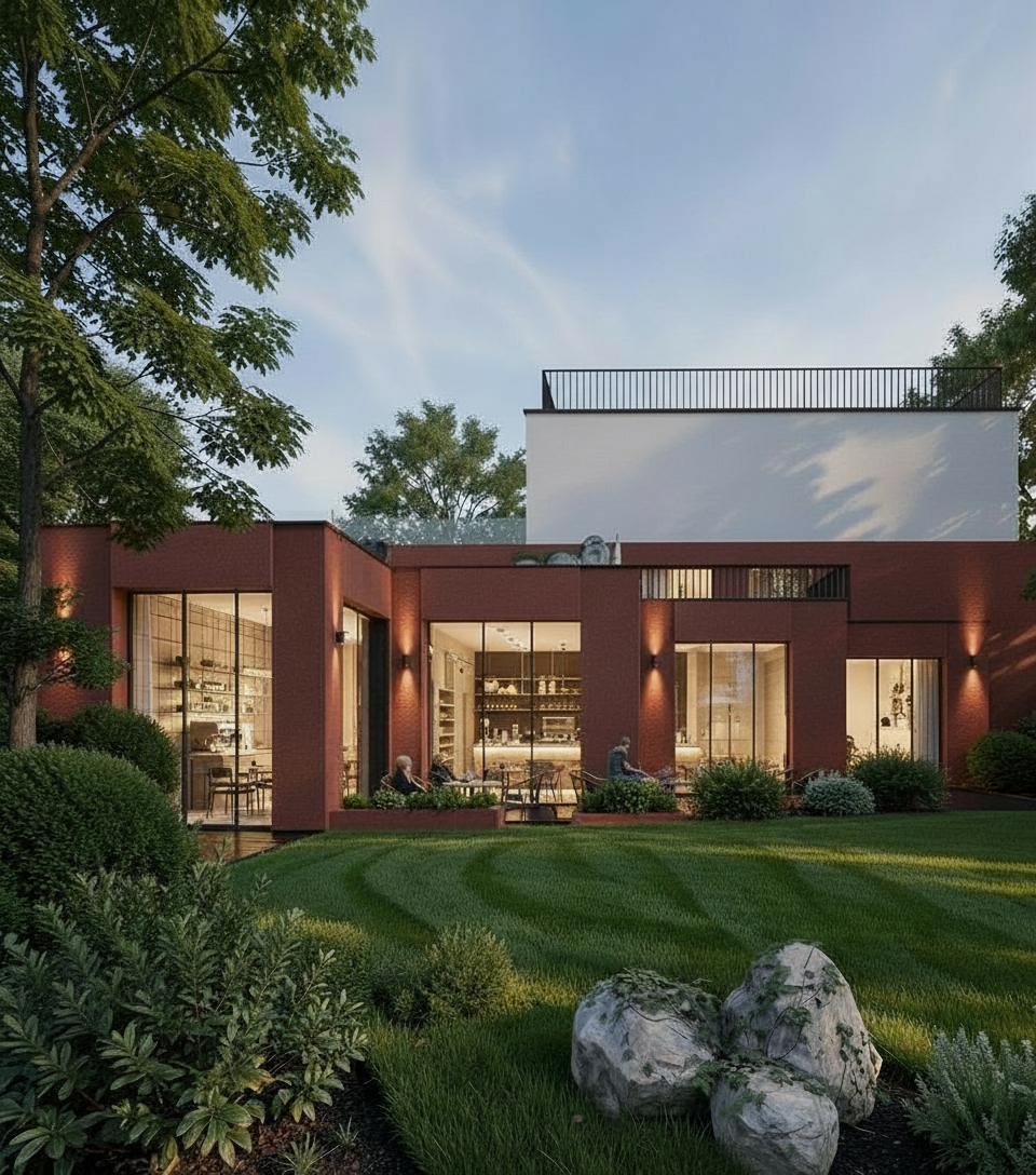 the glass on the left of the second floor is black rails